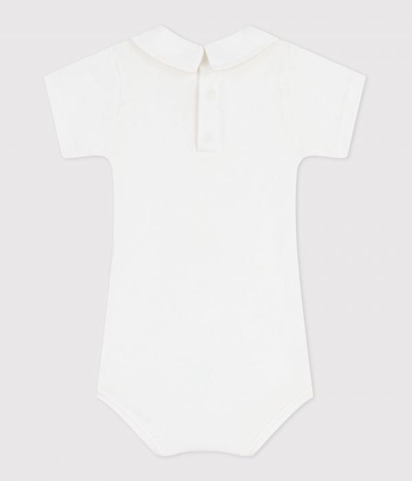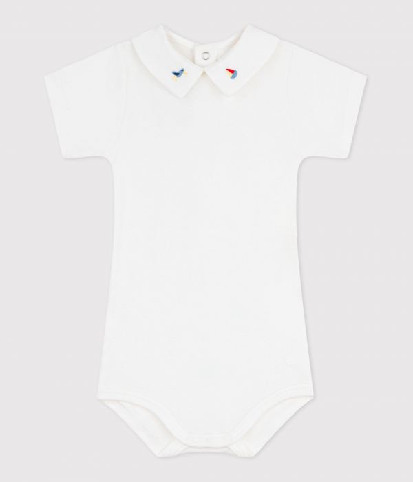 Body garçon en côte 1x1, une matière extensible et confortable avec un col en popeline brodé.