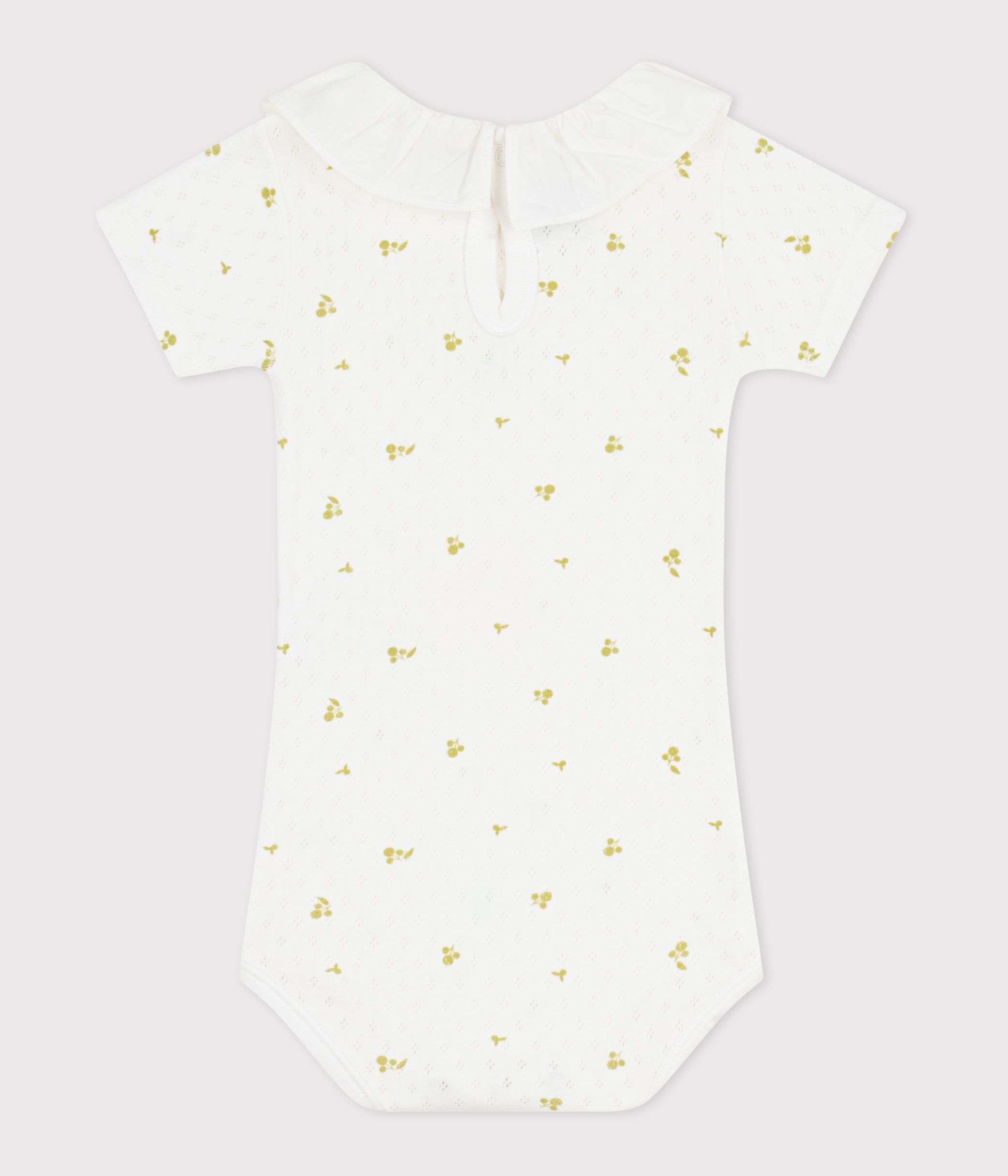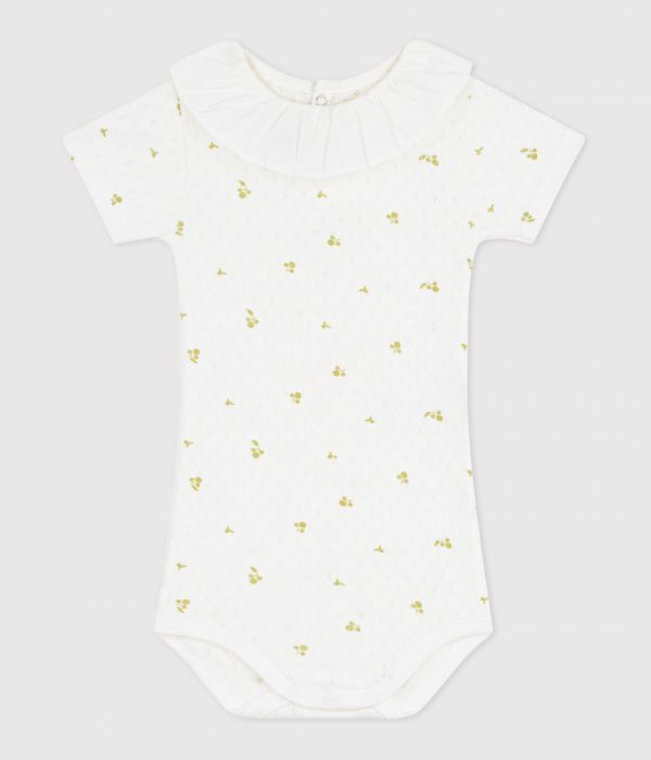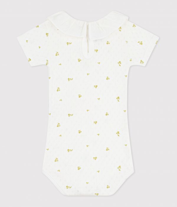 Body fille en côte 1x1 ajourée, une matière extensible et confortable avec un col en popeline.
