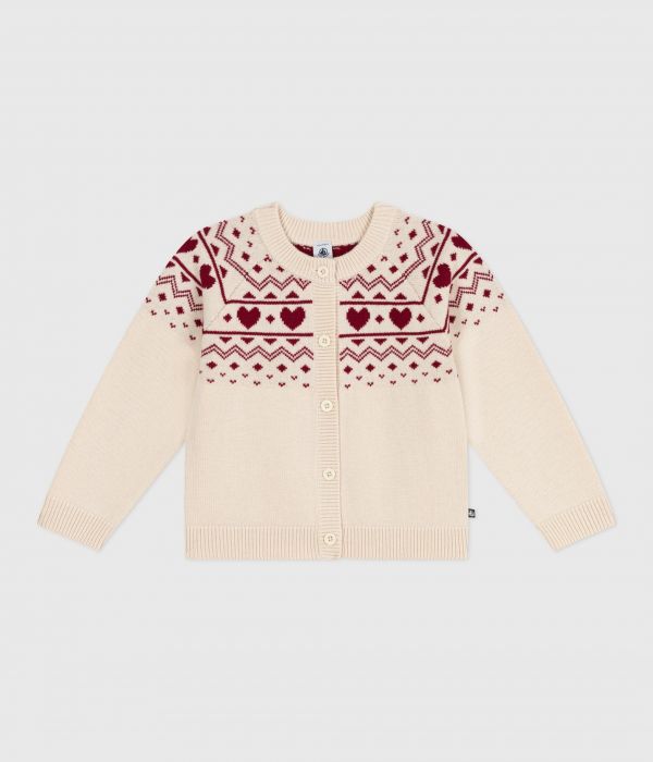 Cardigan fille en tricot de laine, doux et chaud pour l'hiver. Tendance avec son motif jacquard.