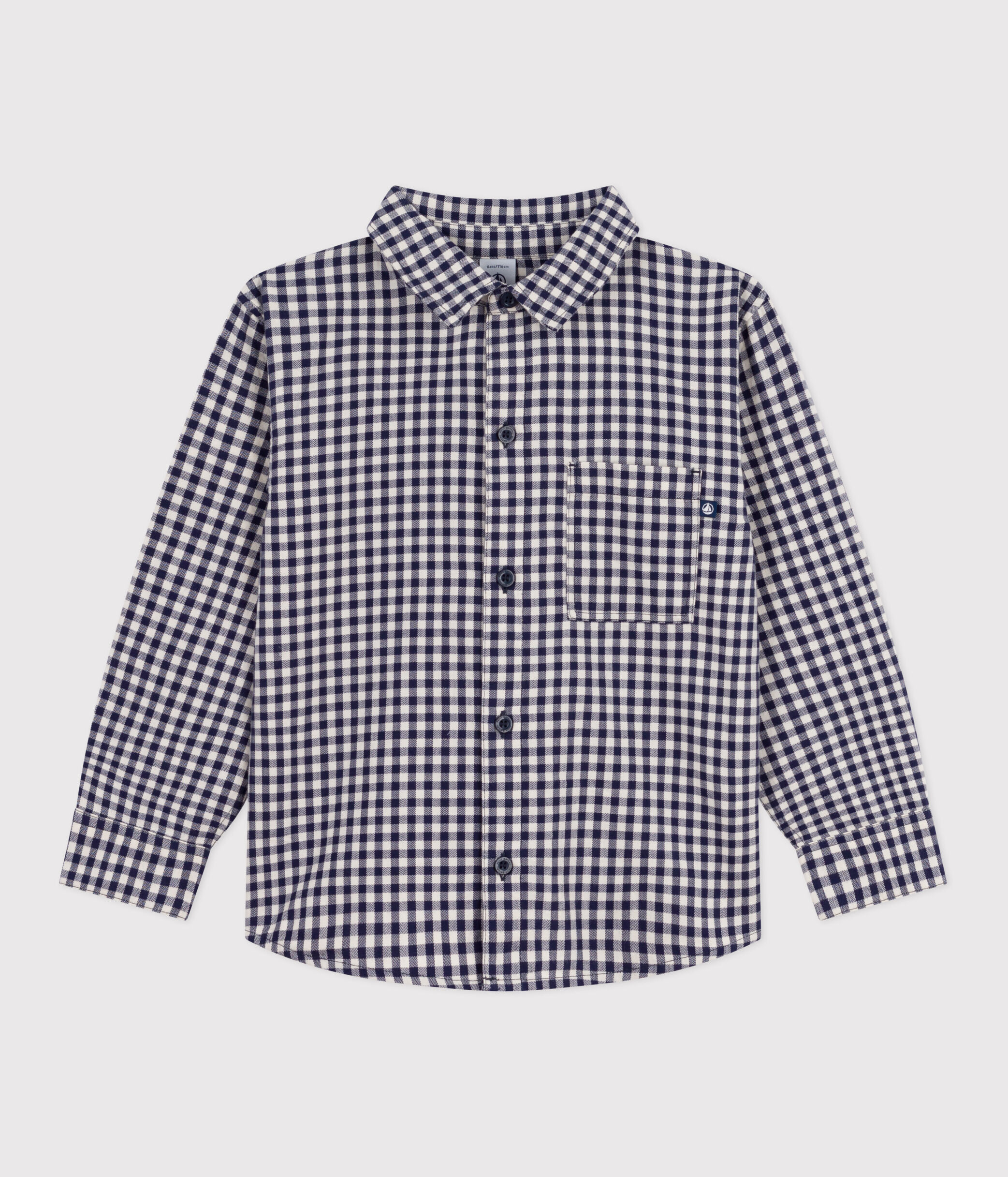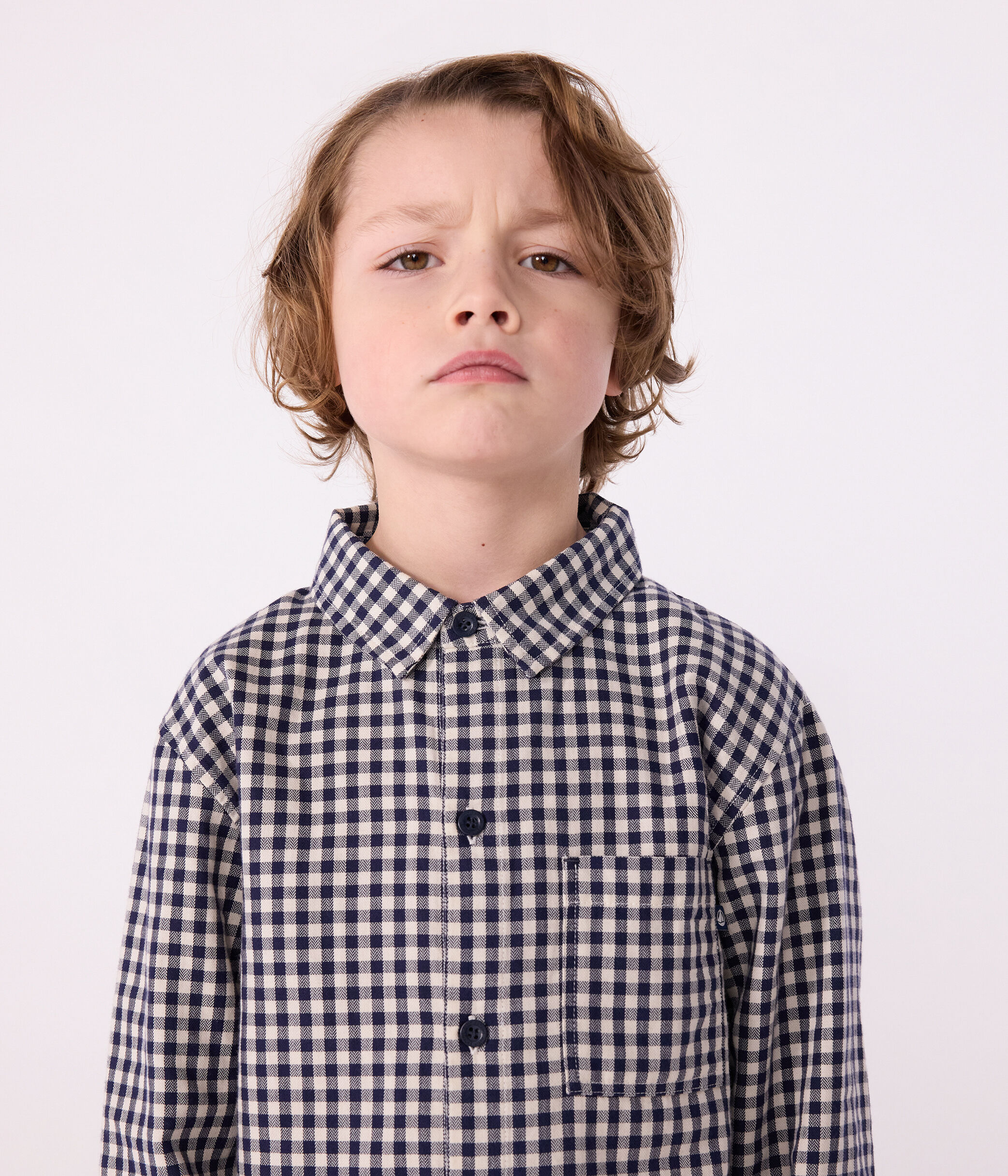 Chemise garçon en popeline à carreaux, une toile légère, fine et souple.