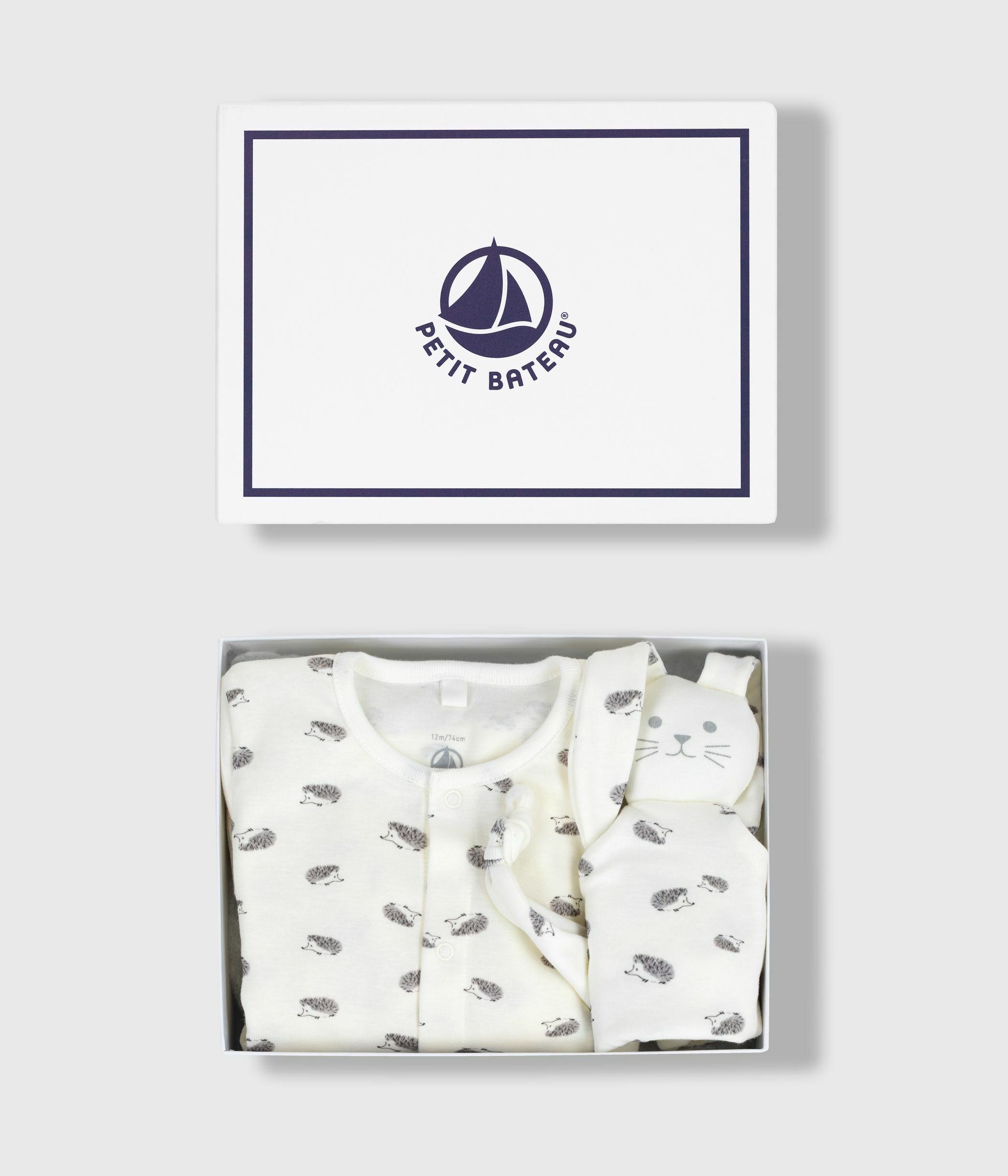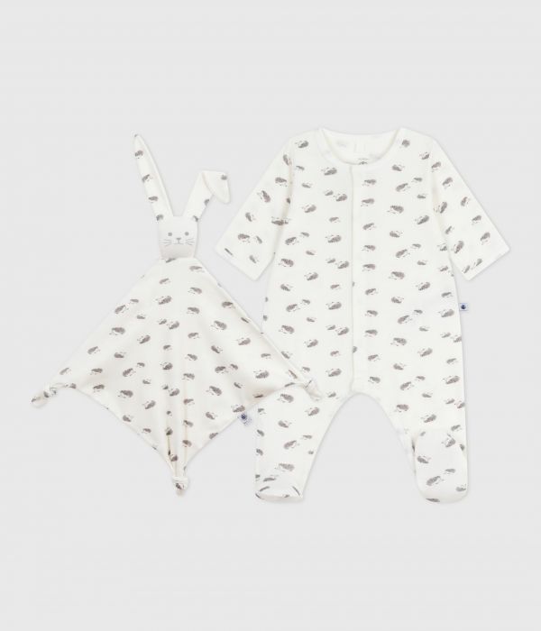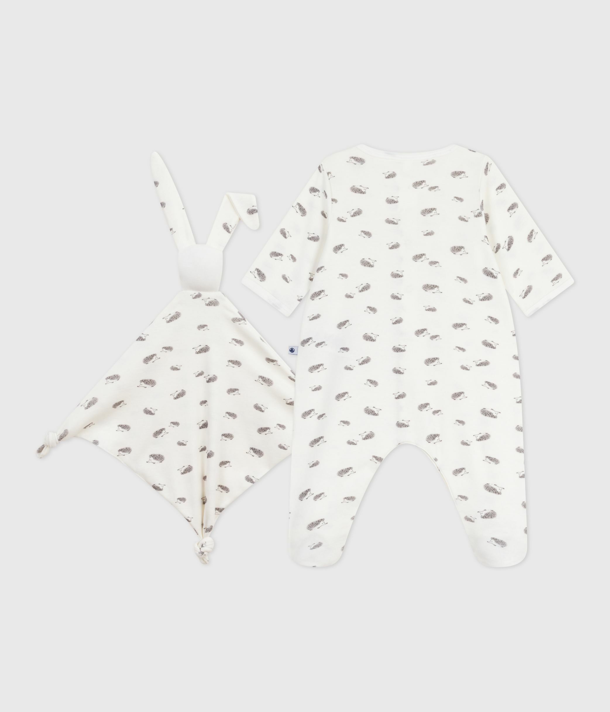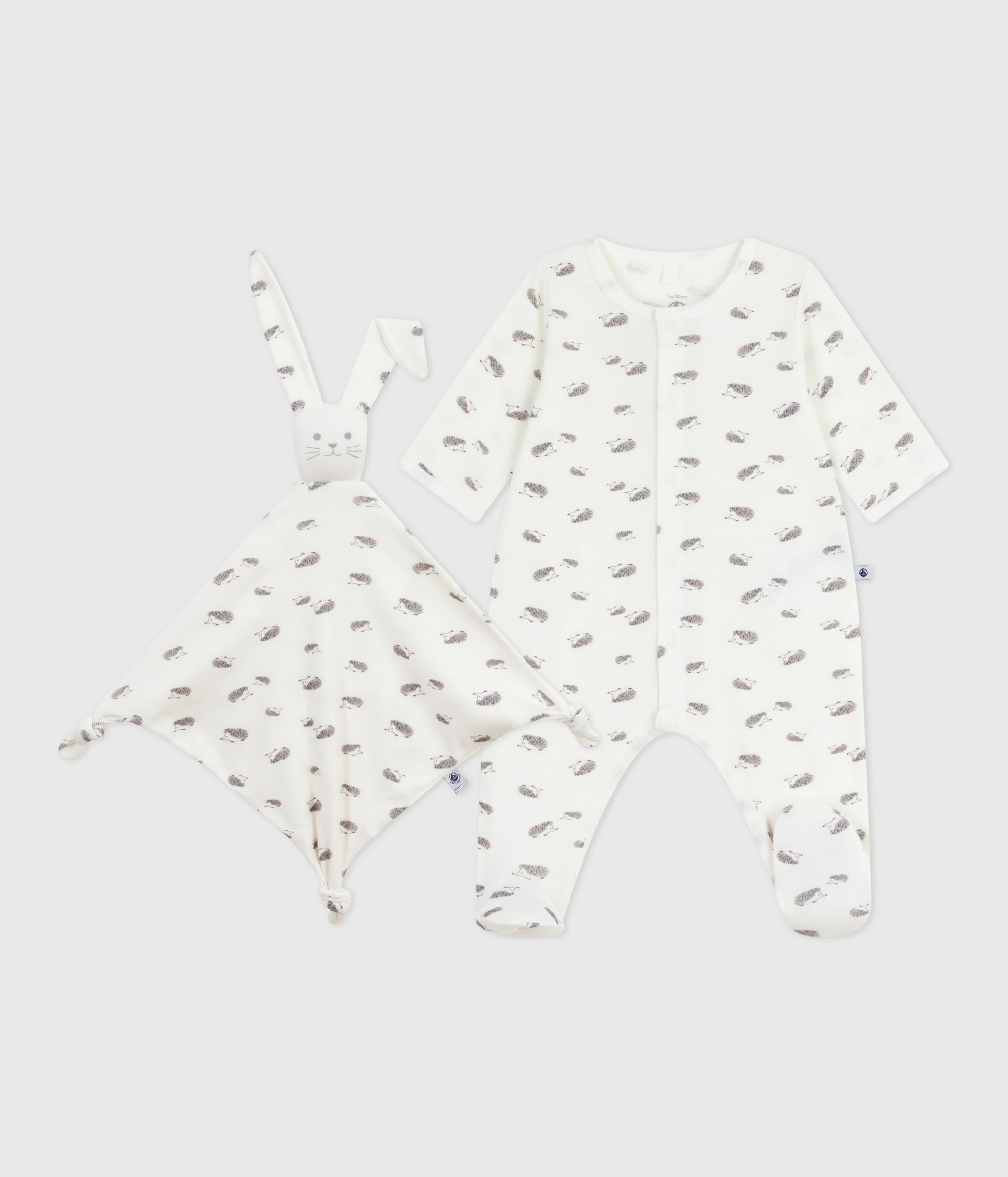 Ensemble mixte composé d'un pyjama et doudou en côte 1X1, une matière extensible et confortable.