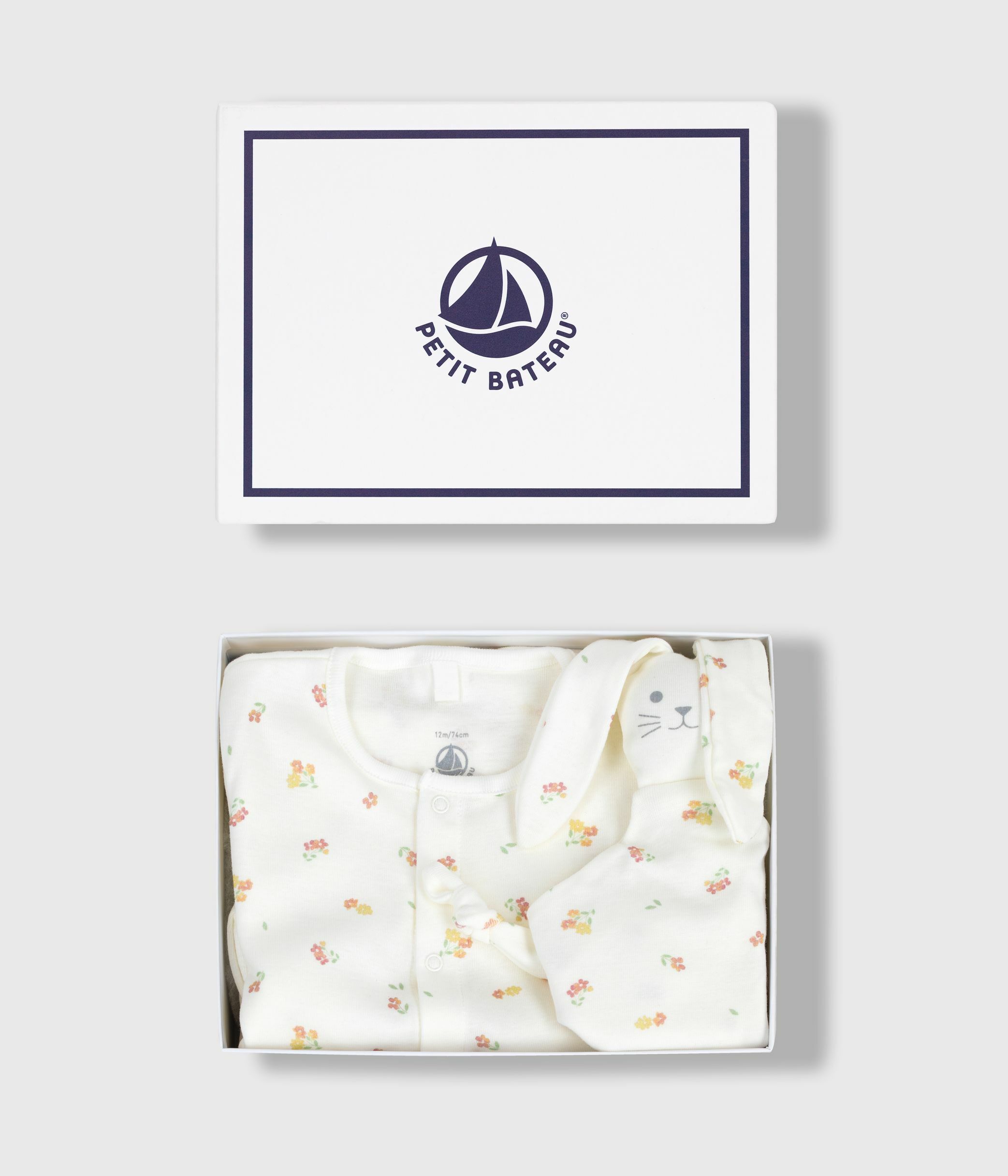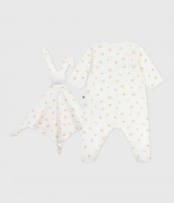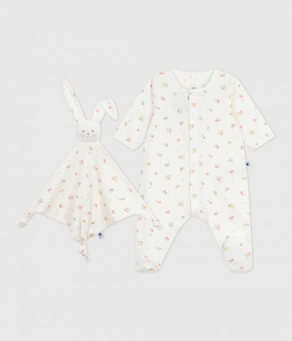 Ensemble fille composé d'un pyjama et doudou en côte 1X1, une matière extensible et confortable.