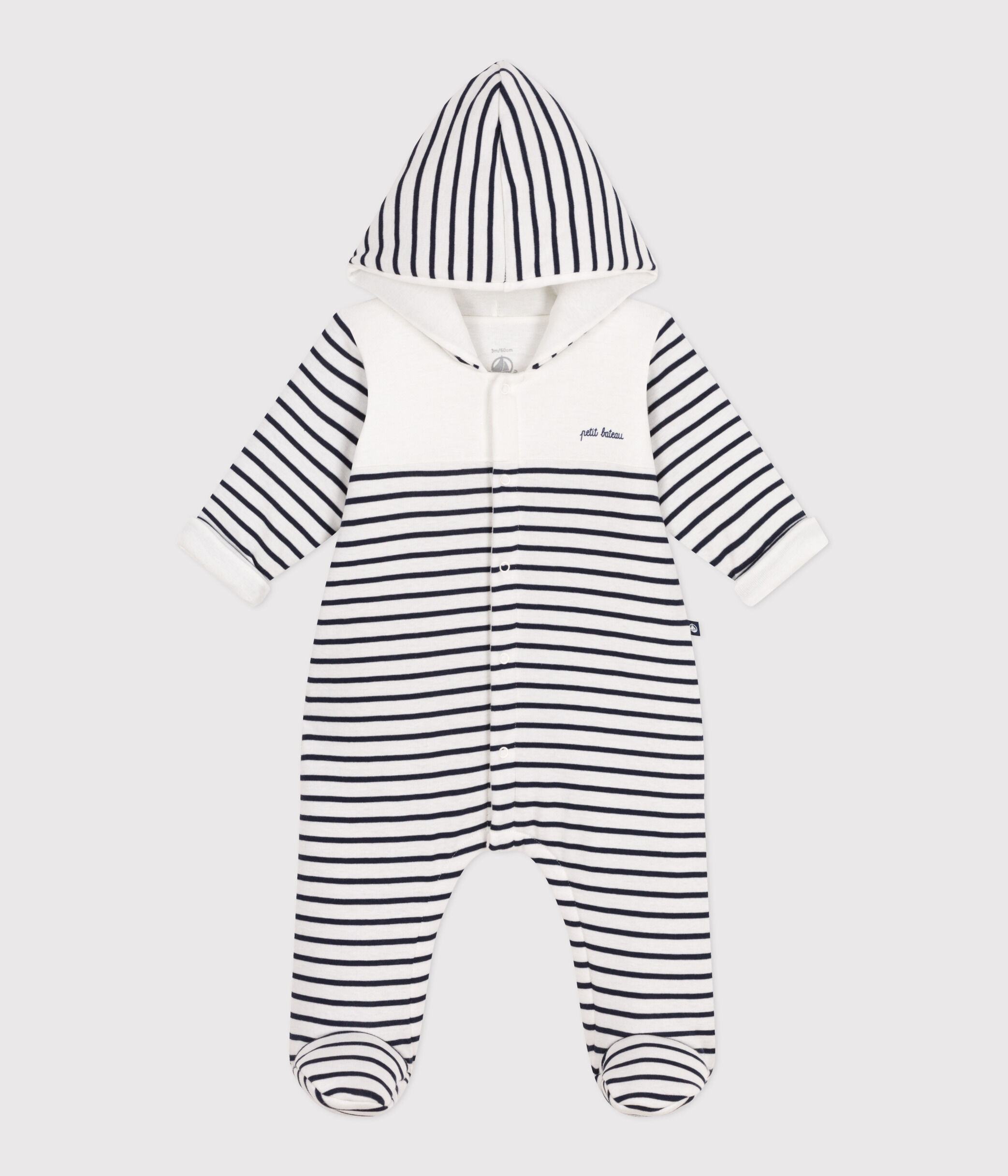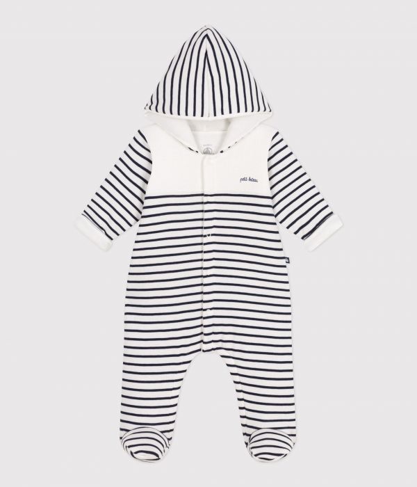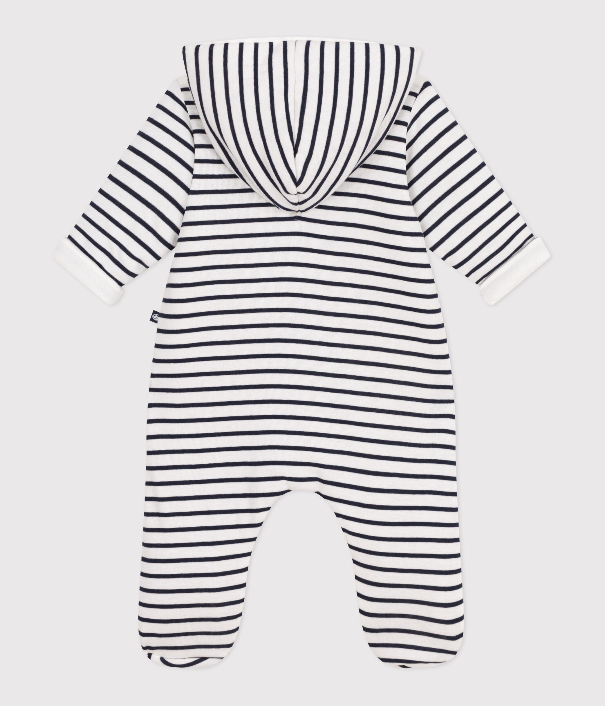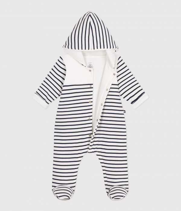 Combinaison mixte iconique en côte 1X1 ouatinée, confortable, douce, avec Petit Bateau sur le cœur.