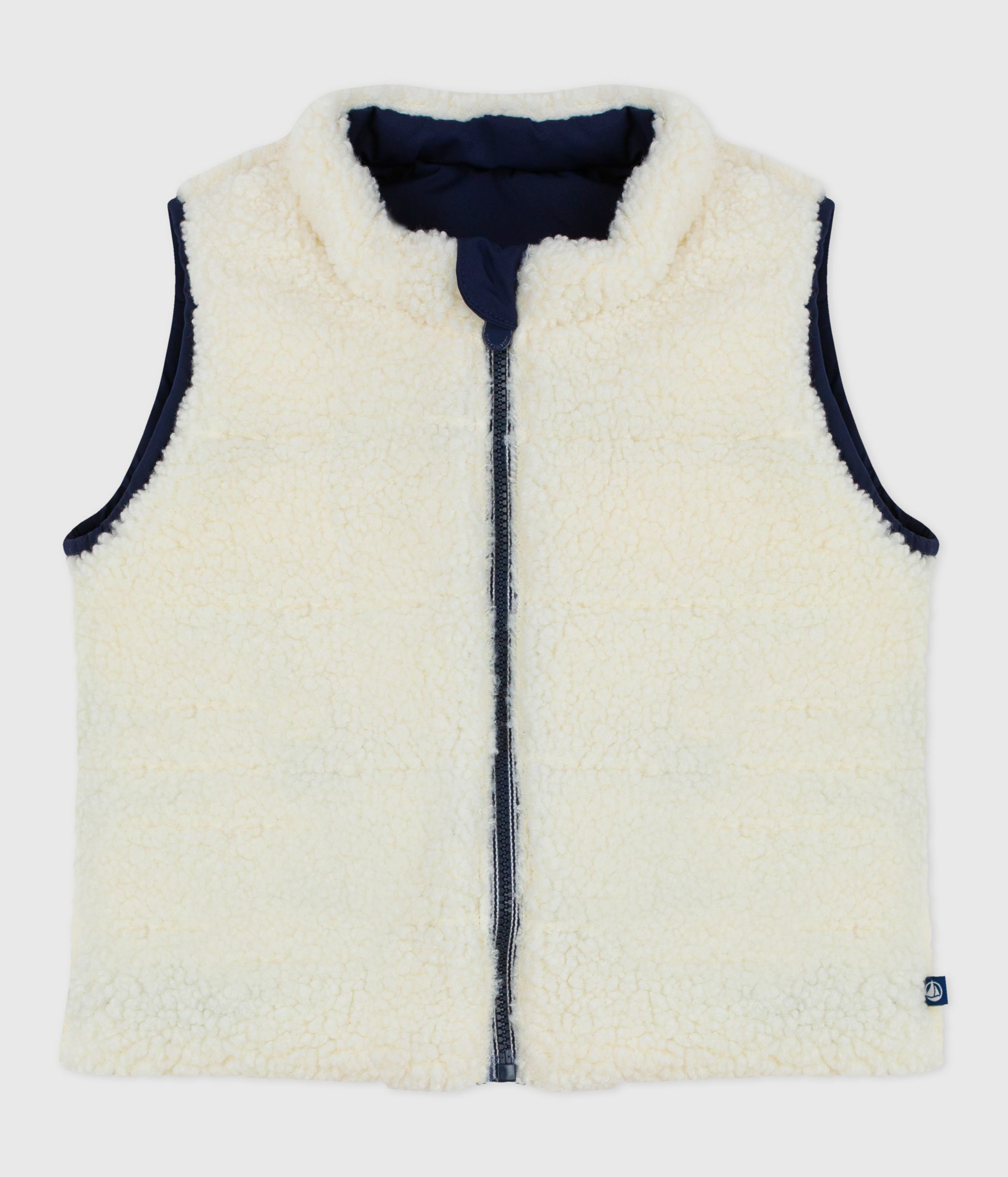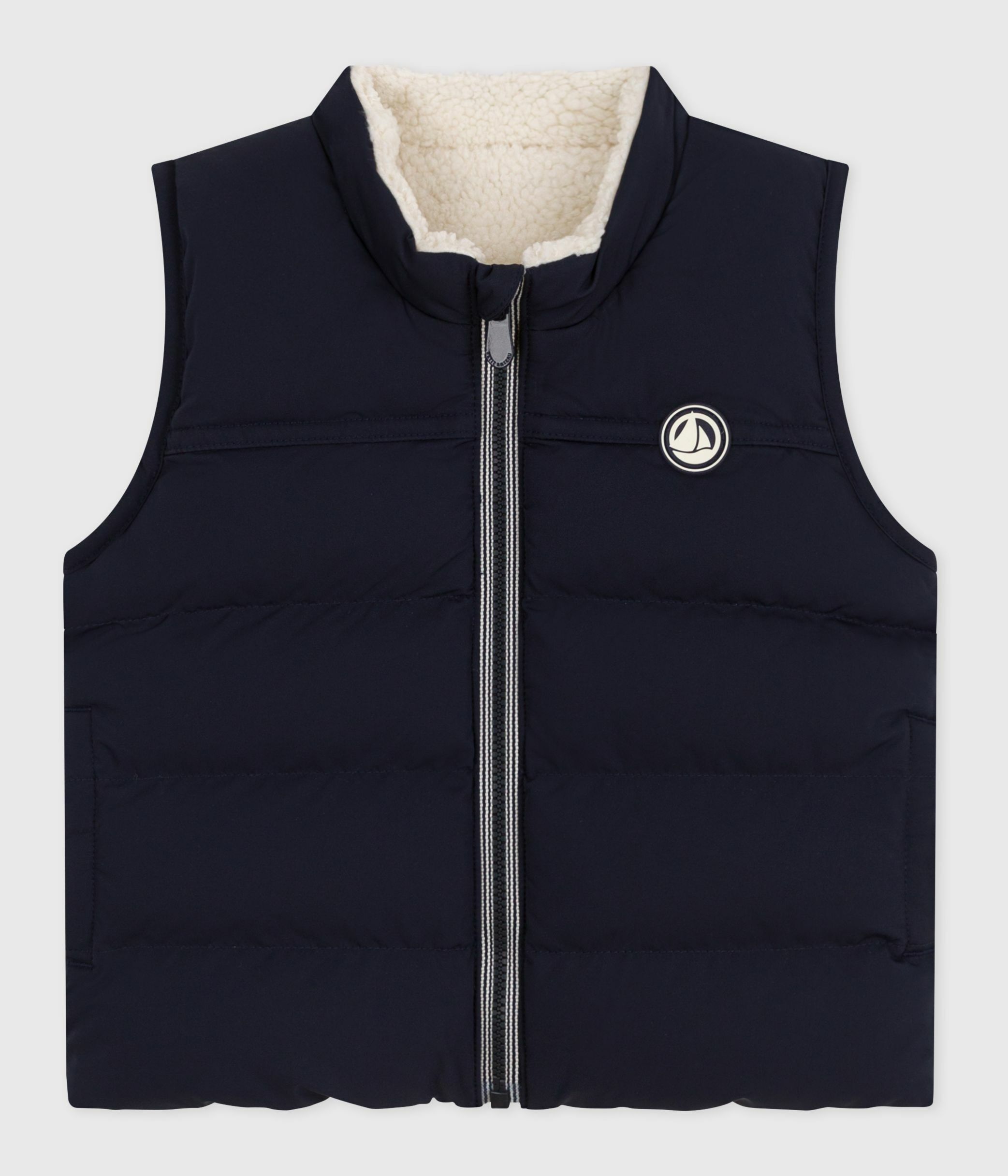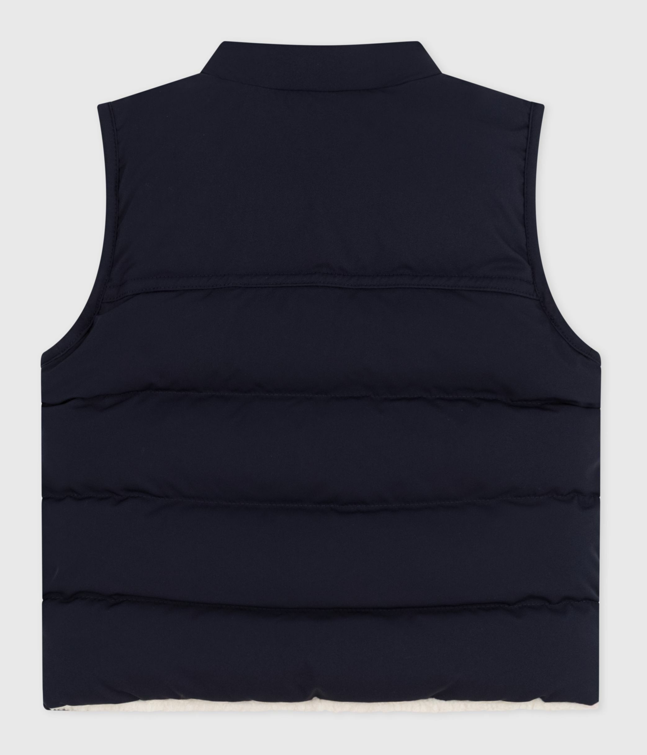 Doudoune double face : une matière à l'aspect mat sur une et à l'aspect moutonnée sur l'autre.