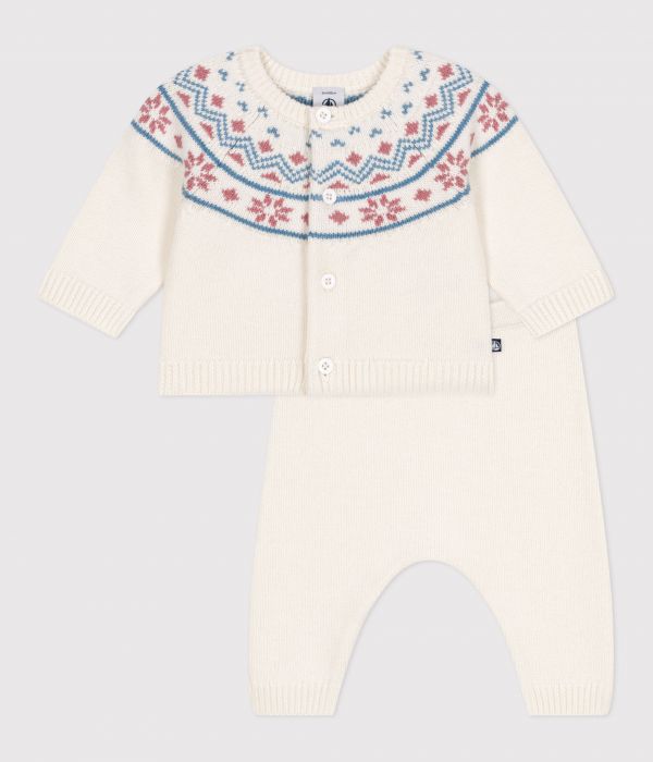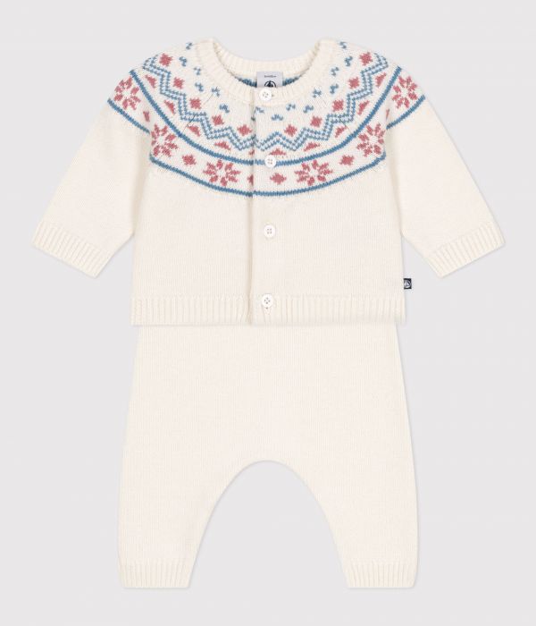 Cardigan et pantalon en tricot contenant de la laine, une matière confortable idéale pour l'hiver.