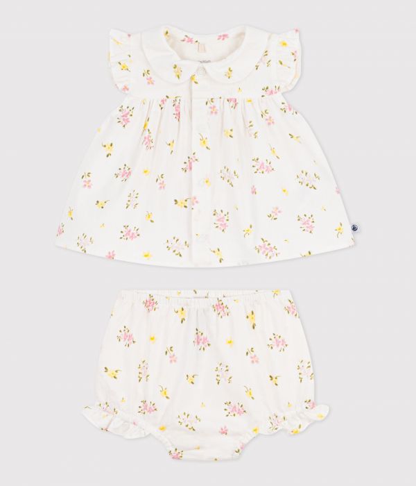 Ensemble 2 pièces fille en seersucker, une matière légère, fine et souple, légèrement gaufrée.