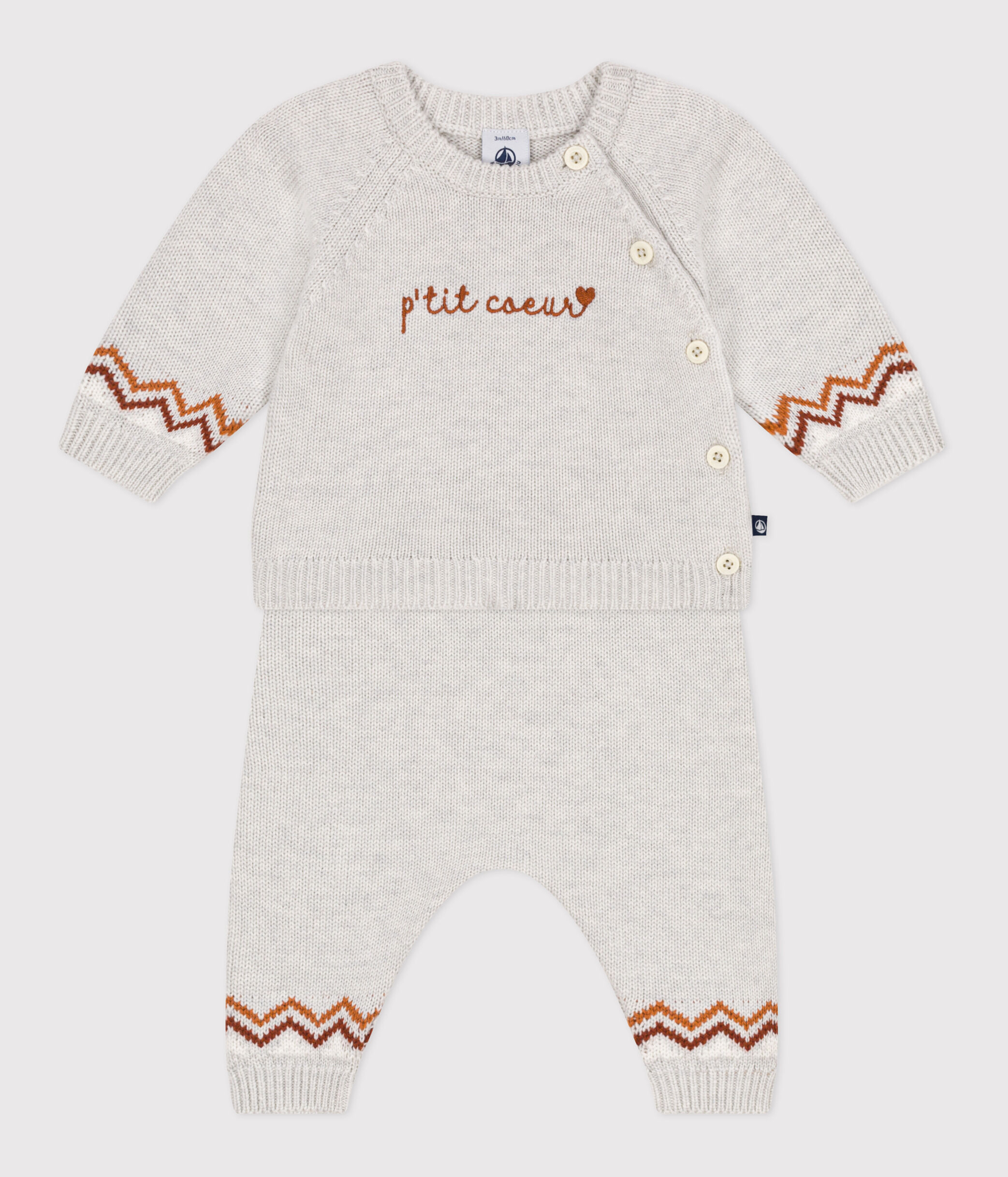 Ensemble 2 pièces bébé en tricot, imprimé P'tit Cœur