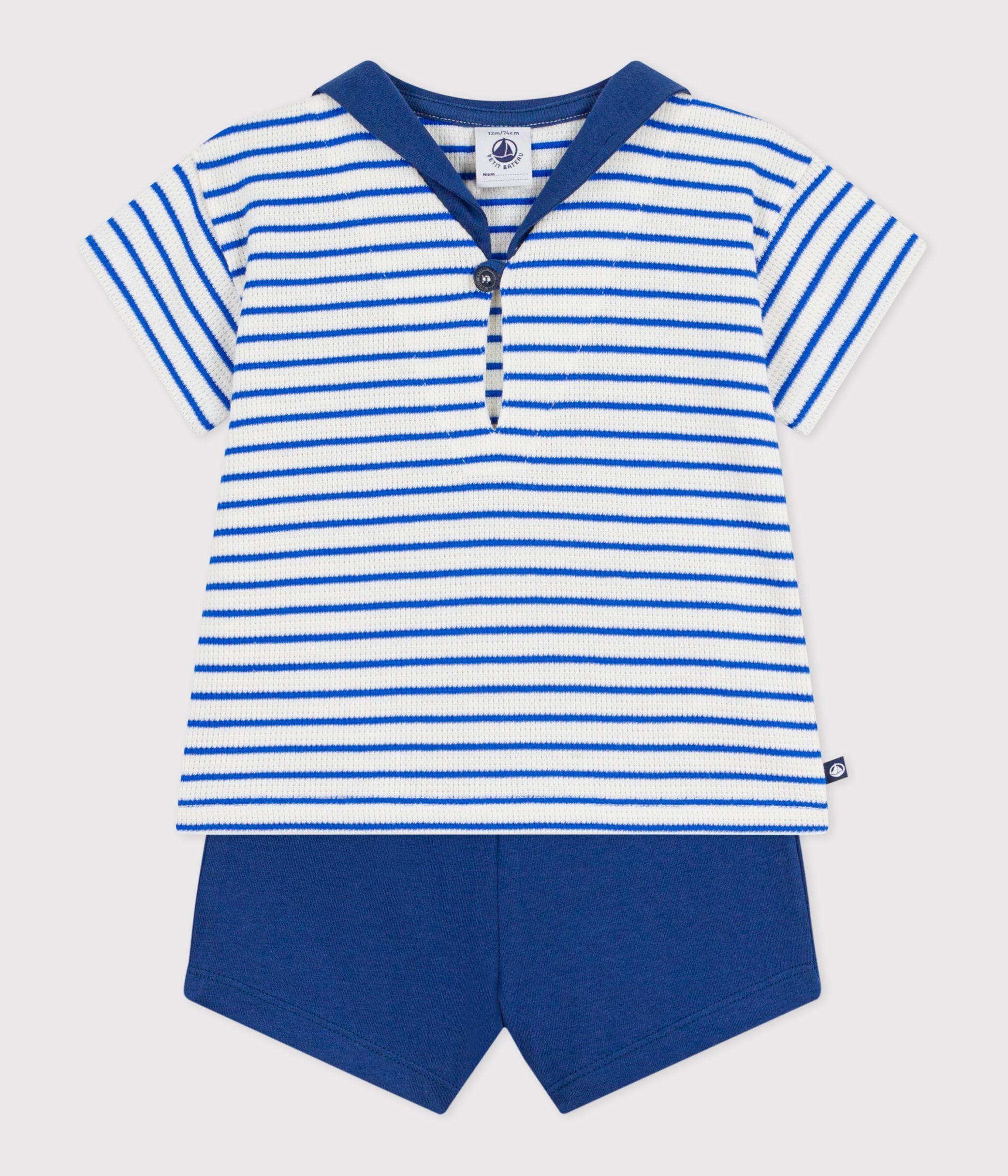 Ensemble garçon en nid d'abeille, une matière visuellement reliéfée avec une bonne tenue.