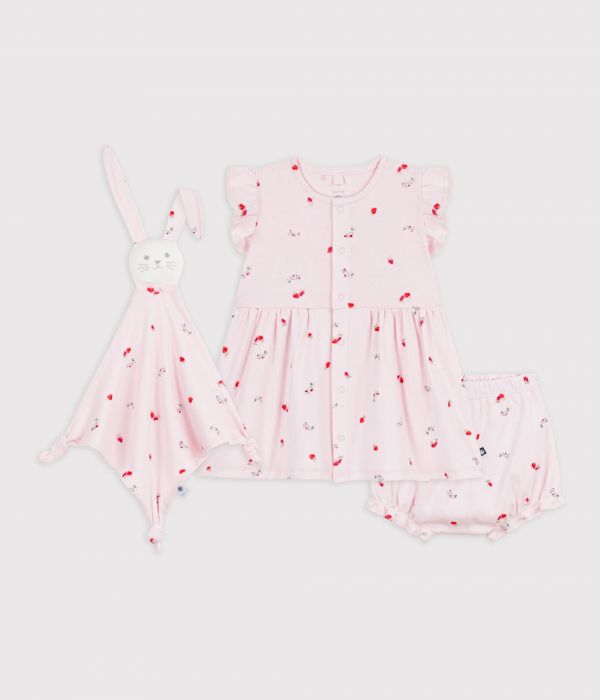 Robe, bloomer et doudou fille en côte 1x1, une matière souple et extensible.