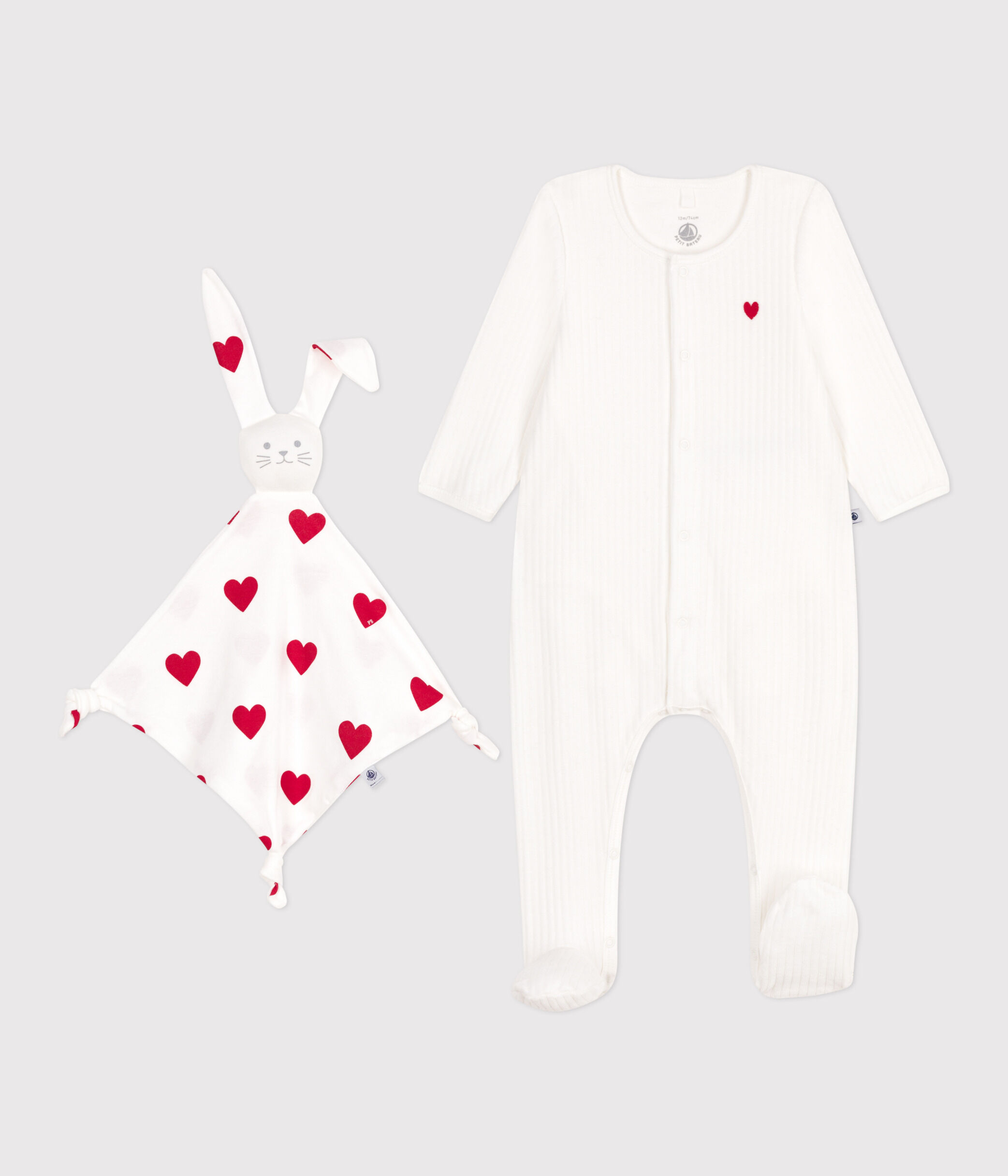 Ensemble mixte composée dans bodyjama en velours et doudou en coton cœurs.