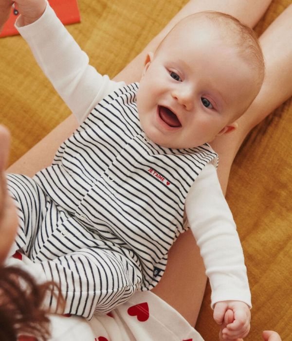 Ensemble composé d'une combinaison rayée sans manche en tubique et d'un body en coton.