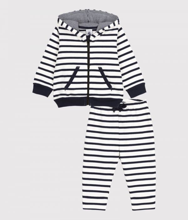 Sweat rayé à capuche doublée avec poche kangourou sur le devant.