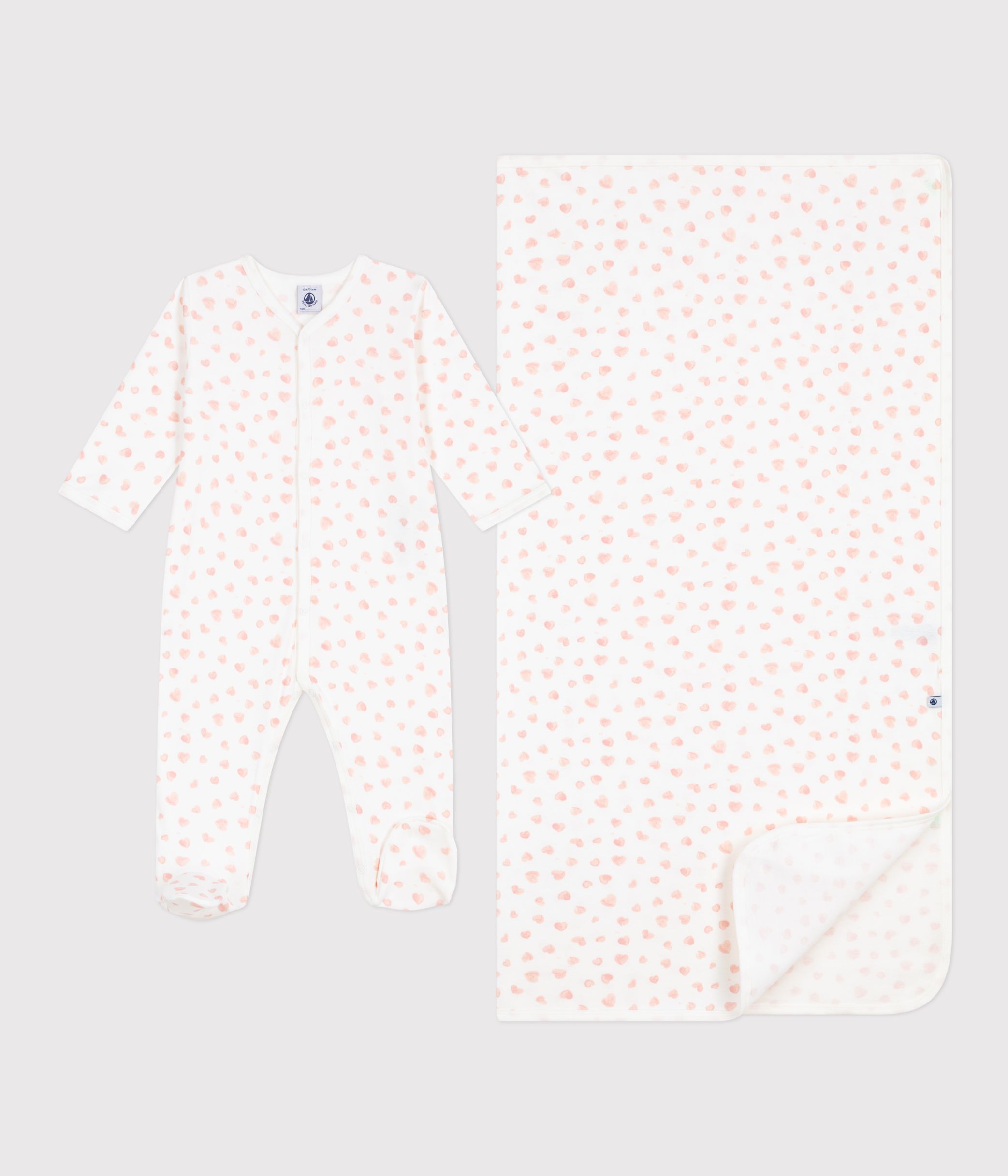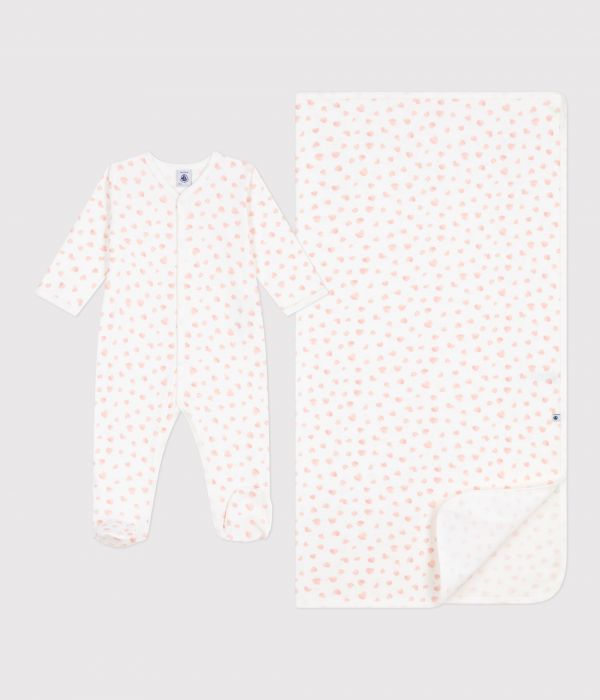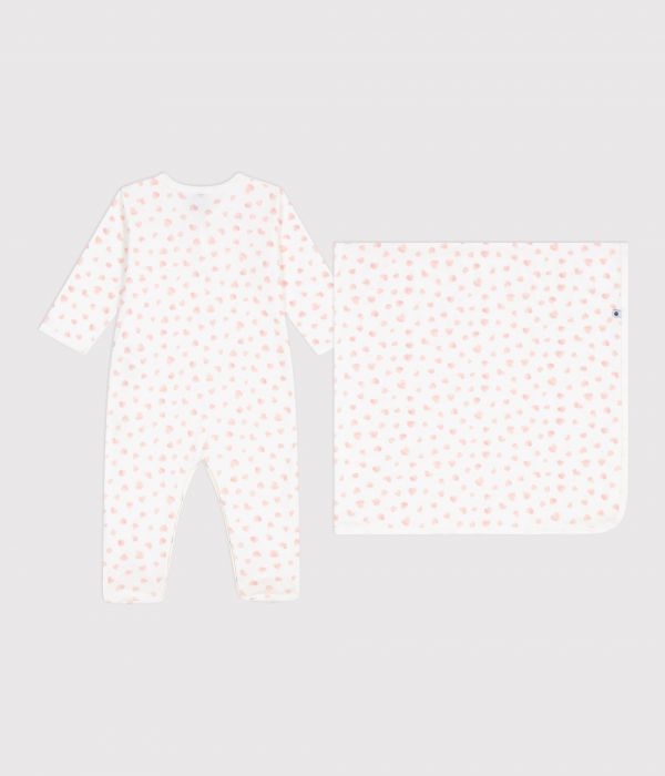 Lot de 2 pièces pyjama et lange fille en côte 1X1, une matière extensible et confortable.