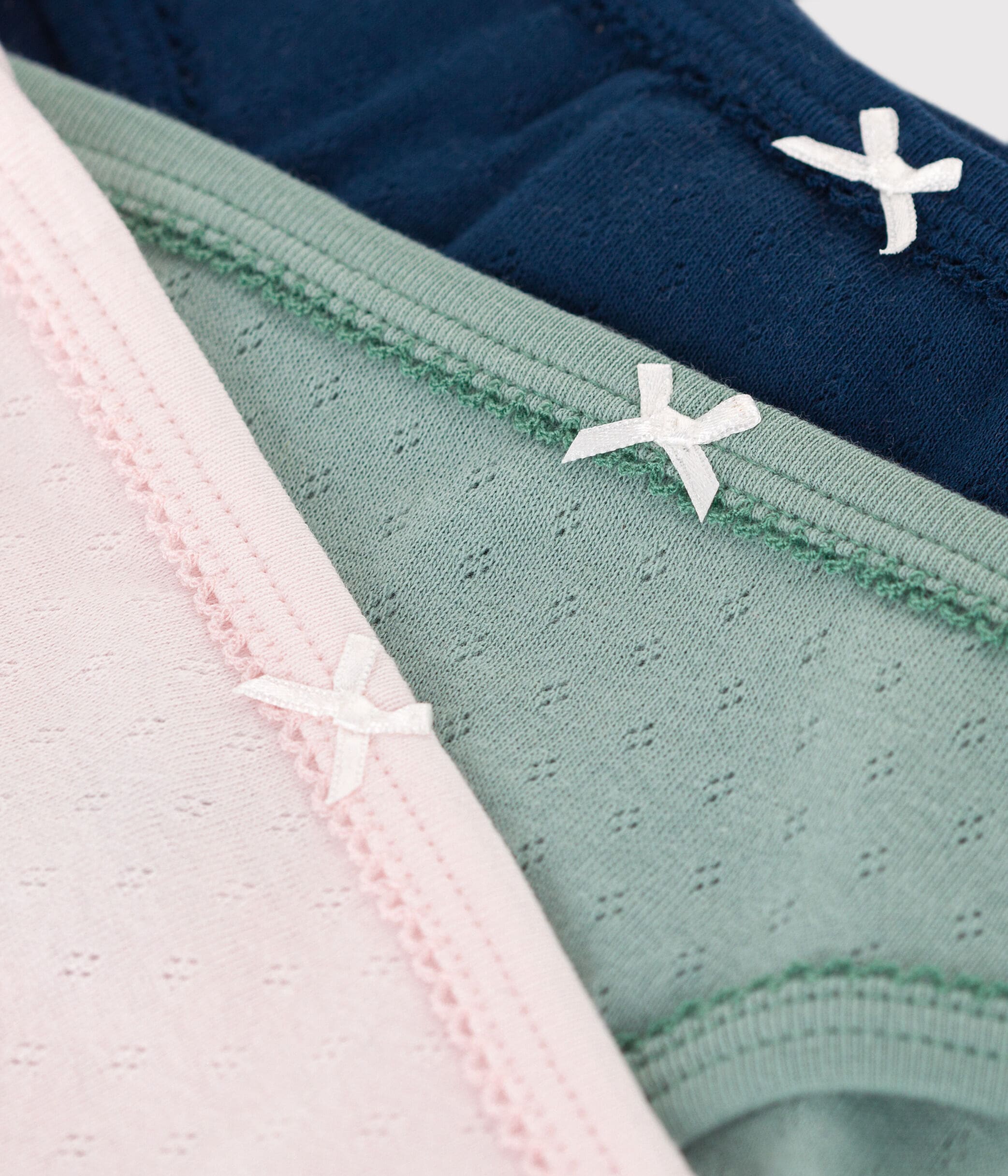 Lot de 3 culottes enfant fille en coton ajouré, une matière douce, légère et ultra confortable.