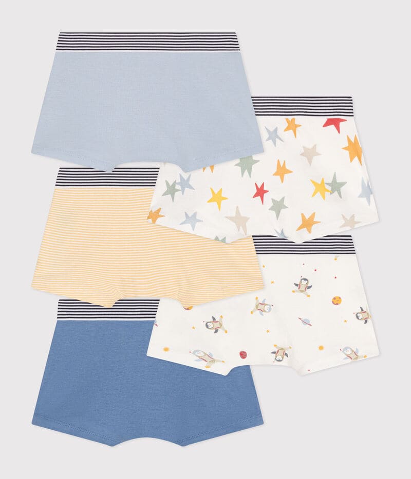 Lot de 5 boxers en côte, la matière emblématique de Petit Bateau, souple et confortable.