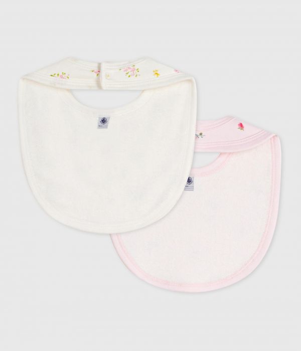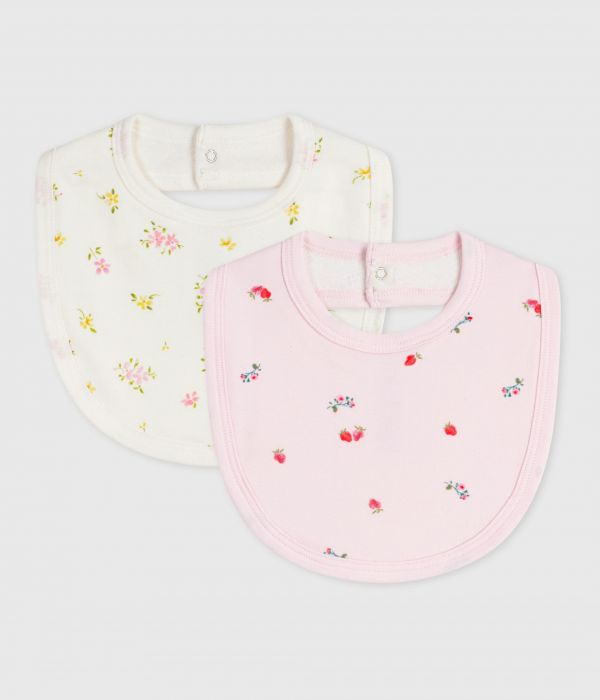 Lot de 2 bavoirs fille en côte 1X1, une matière extensible et confortable.