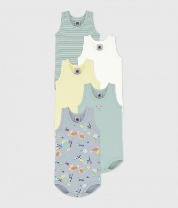 Lot de 5 bodies mixte sans manches en côte 1X1, une matière extensible et confortable.
