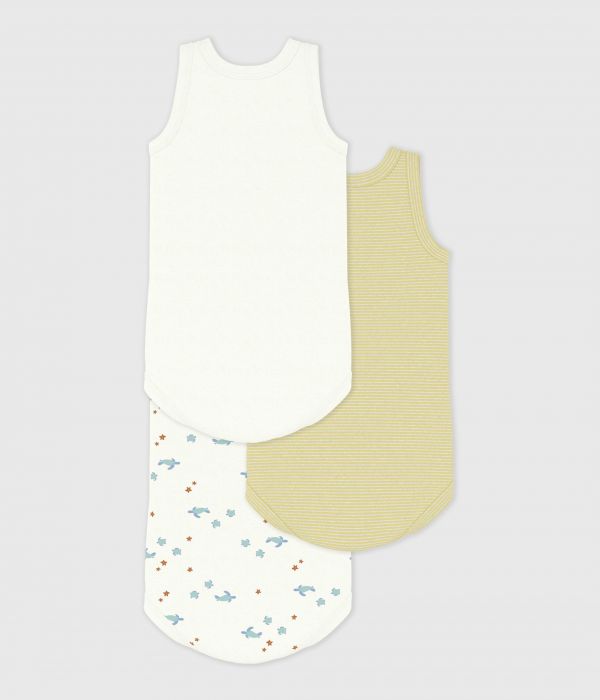 Lot de 3 bodies mixte sans manches en côte 1X1, une matière extensible et confortable.