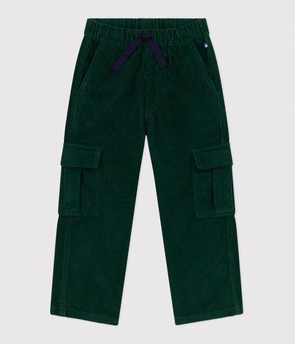 Pantalon cargo droit garçon en gros velours côtelé, confortable et tendance, idéal pour l'hiver.
