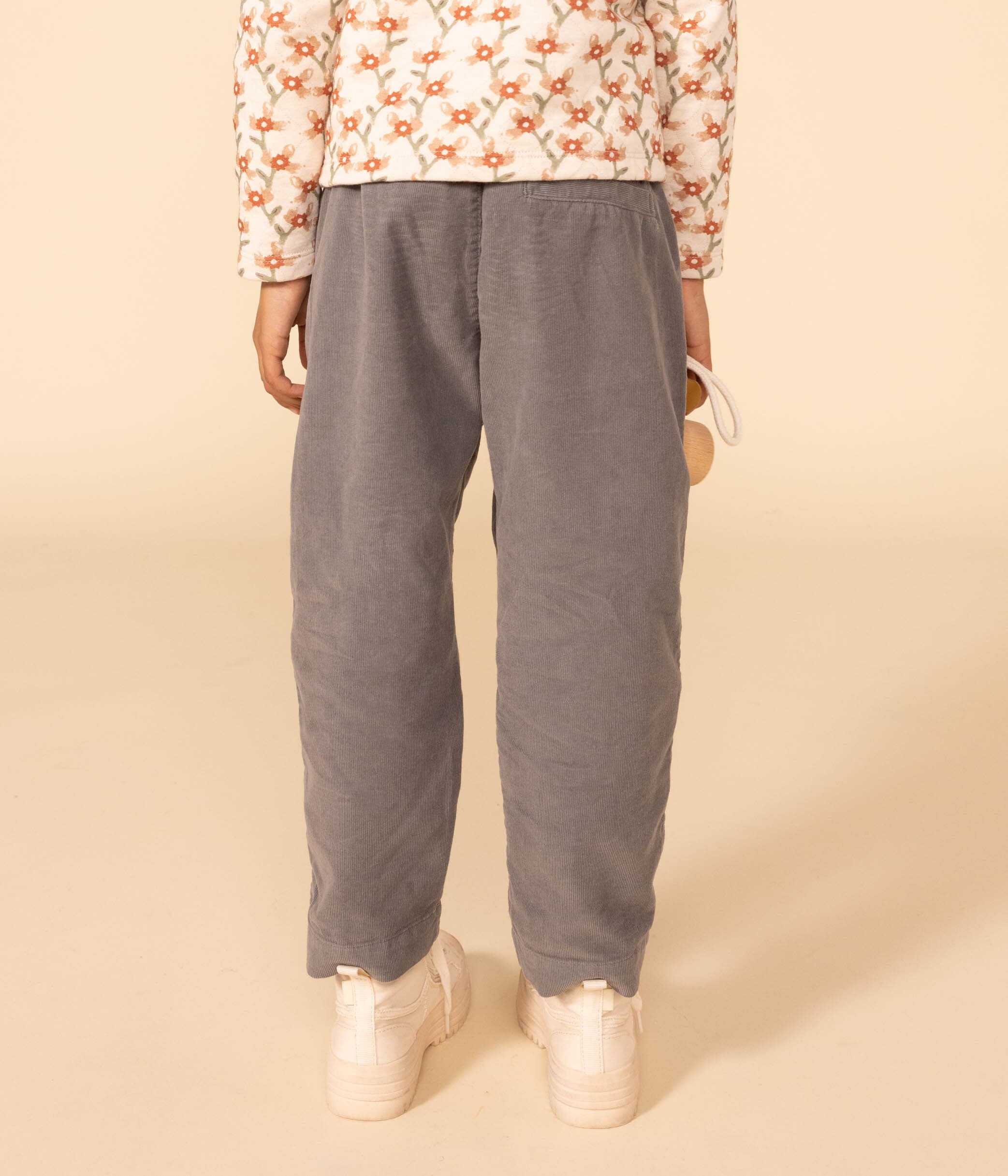 Pantalon 2 poches droit en velours fin, matière agréable et confortable.