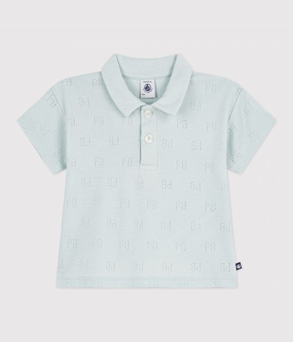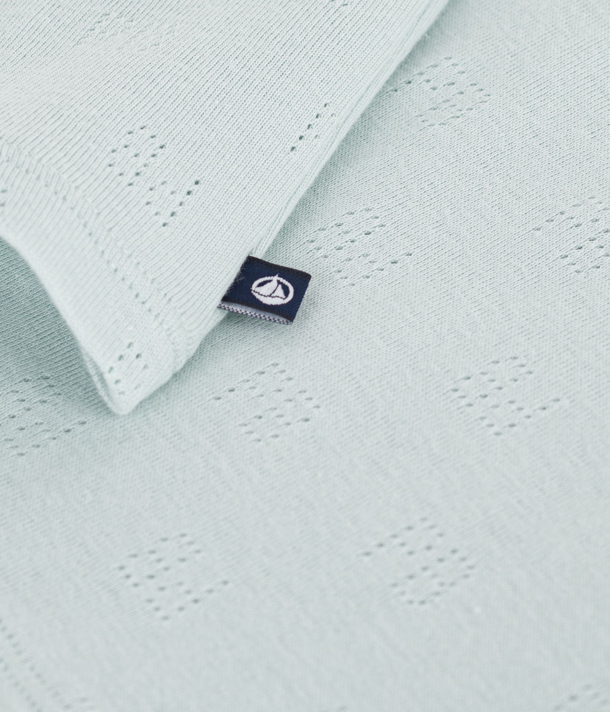 Polo garçon en côte 1x1 ajouré, une matière souple, extensible, emblématique de la marque.