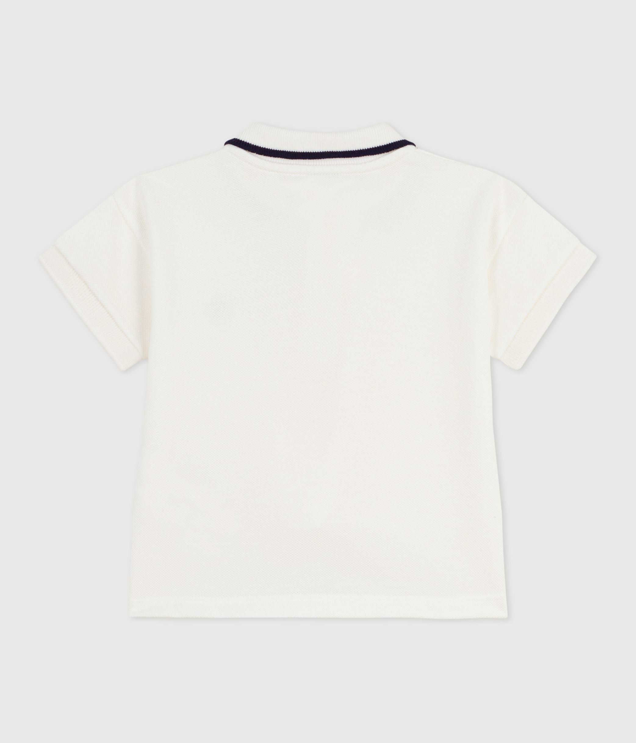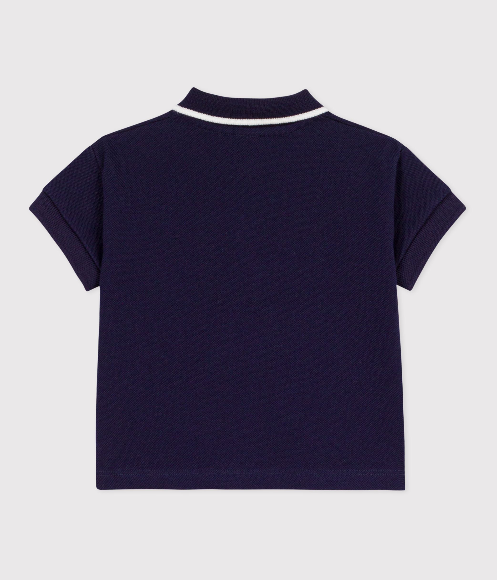 Polo garçon en jersey piqué, une matière avec un visuel reliéfé, emblématique des polos.