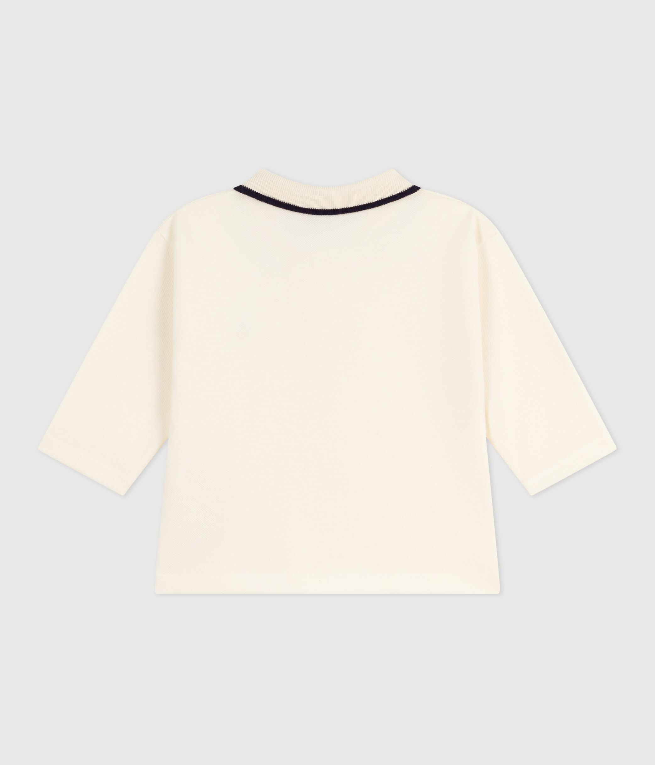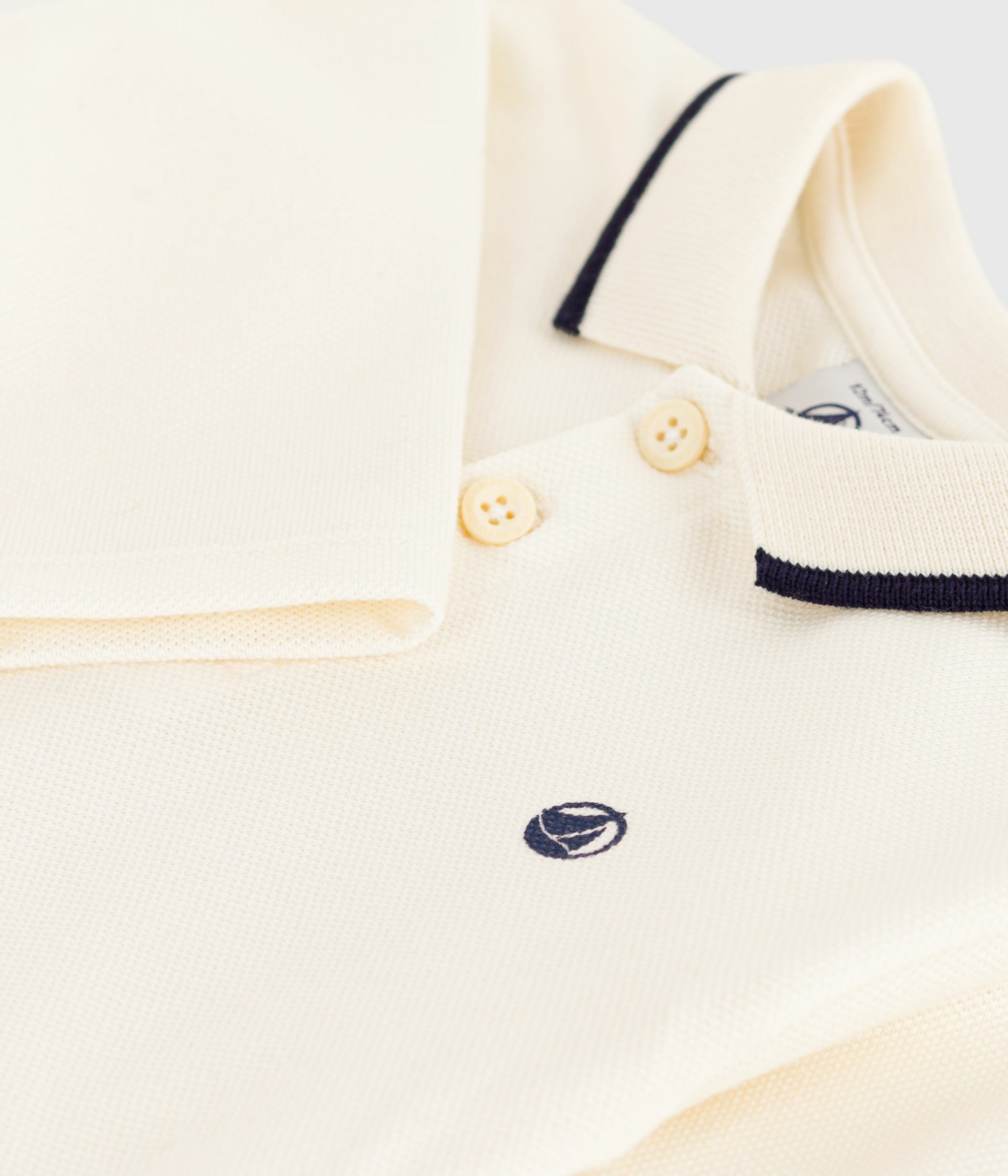 Polo garçon en jersey piqué, une matière avec un visuel reliéfé, emblématique des polos.