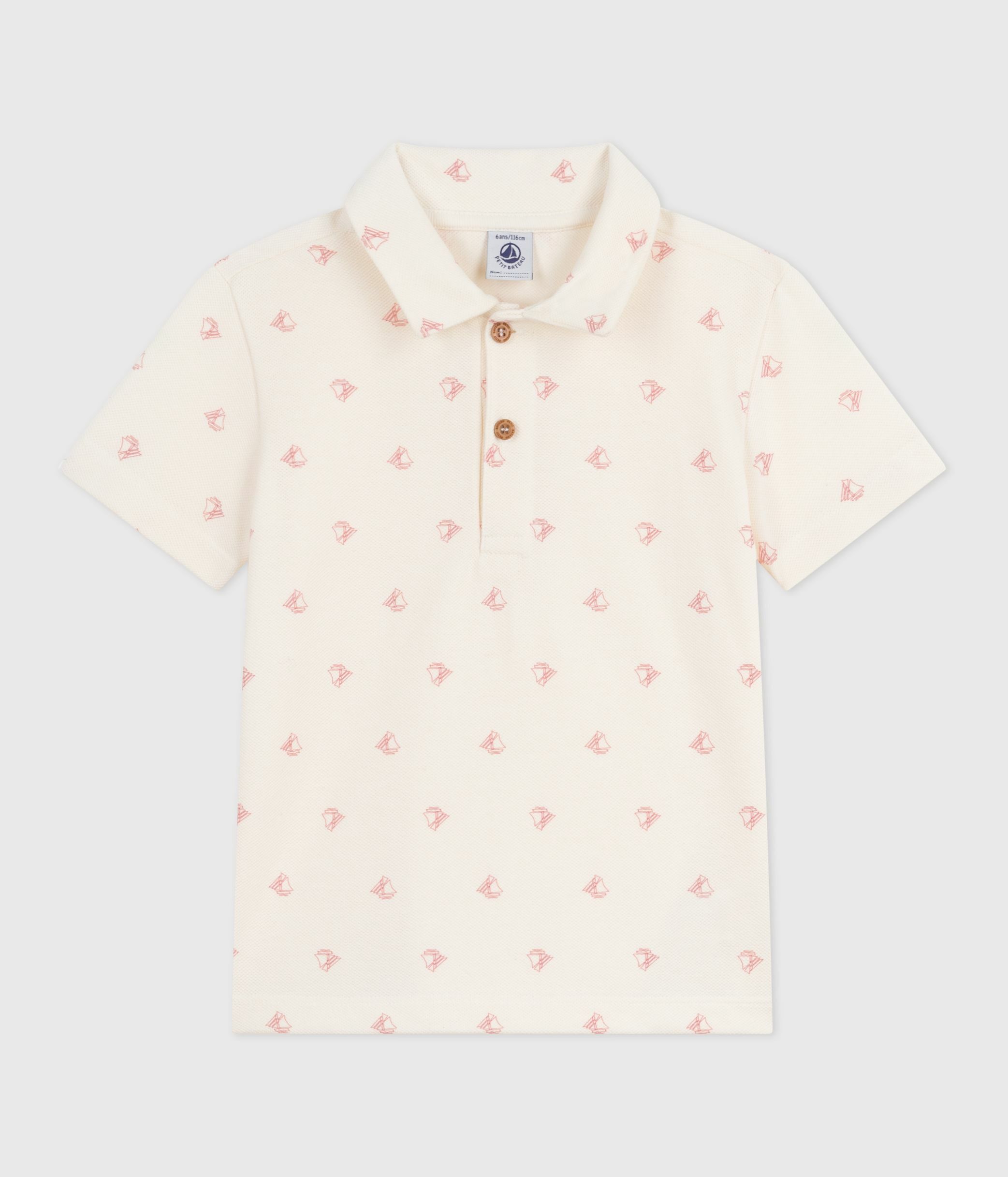 Polo garçon en jersey piqué, une matière avec un visuel reliéfé, emblématique des polos.