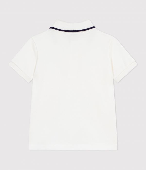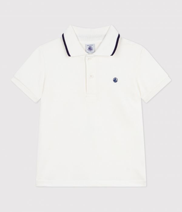 Polo garçon en jersey piqué, une matière avec un visuel reliéfé, emblématique des polos.