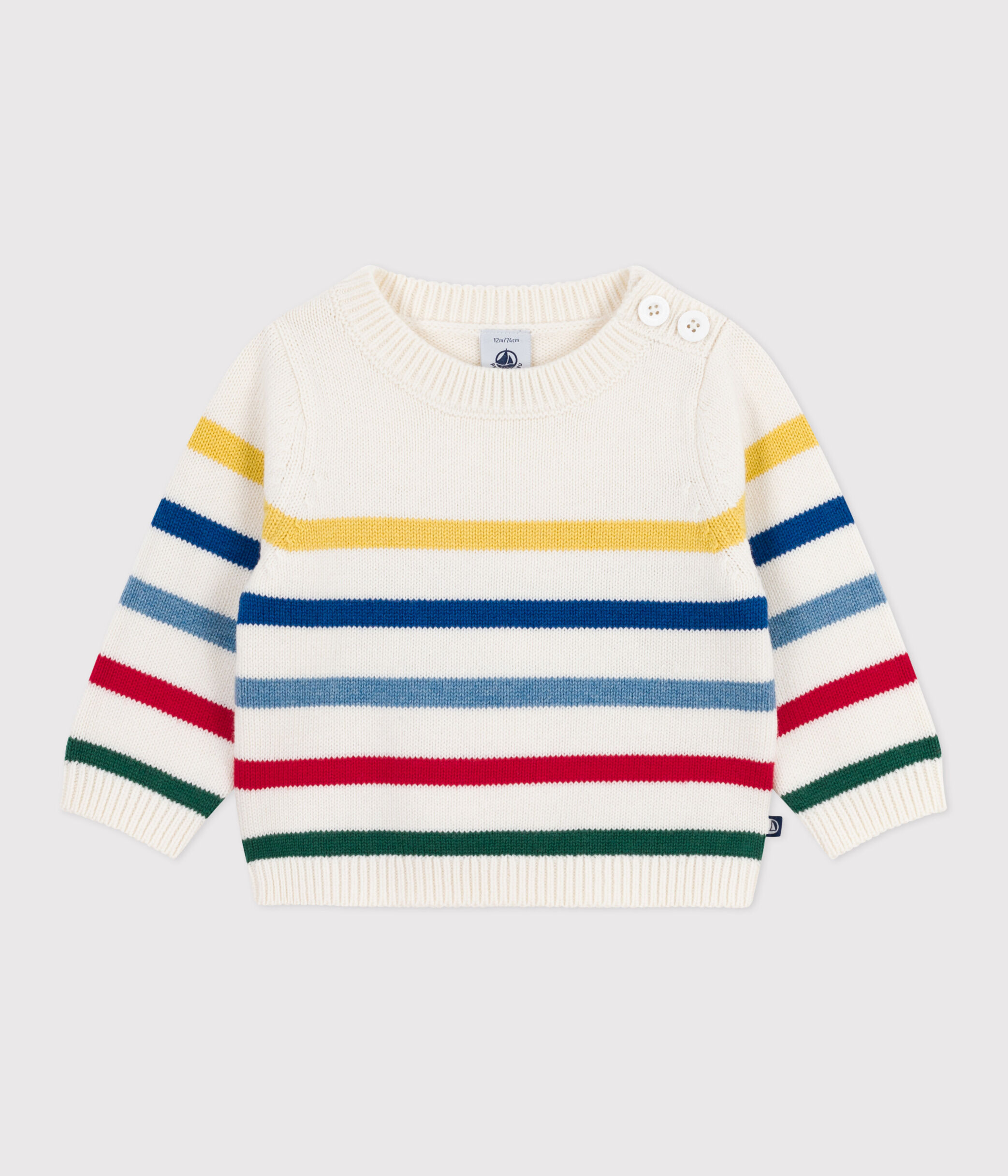 Pull garçon à rayures multico en tricot de laine, doux et chaud pour l'hiver.