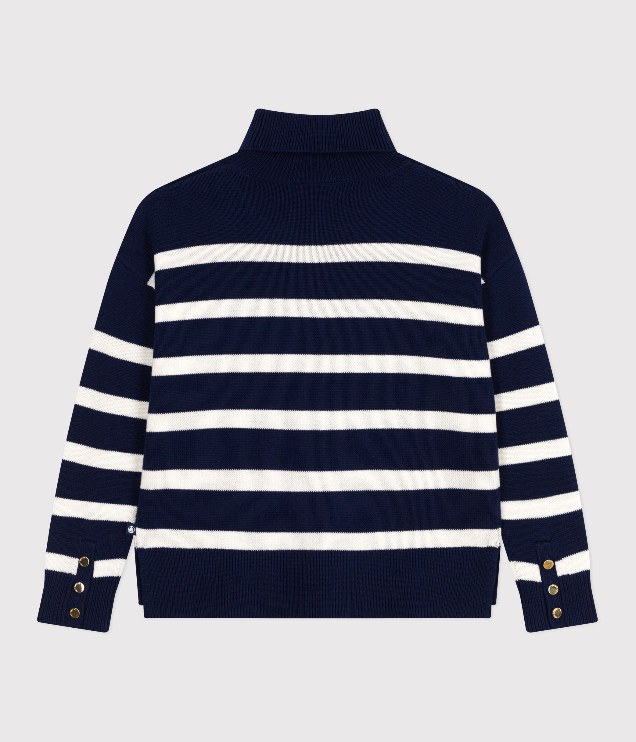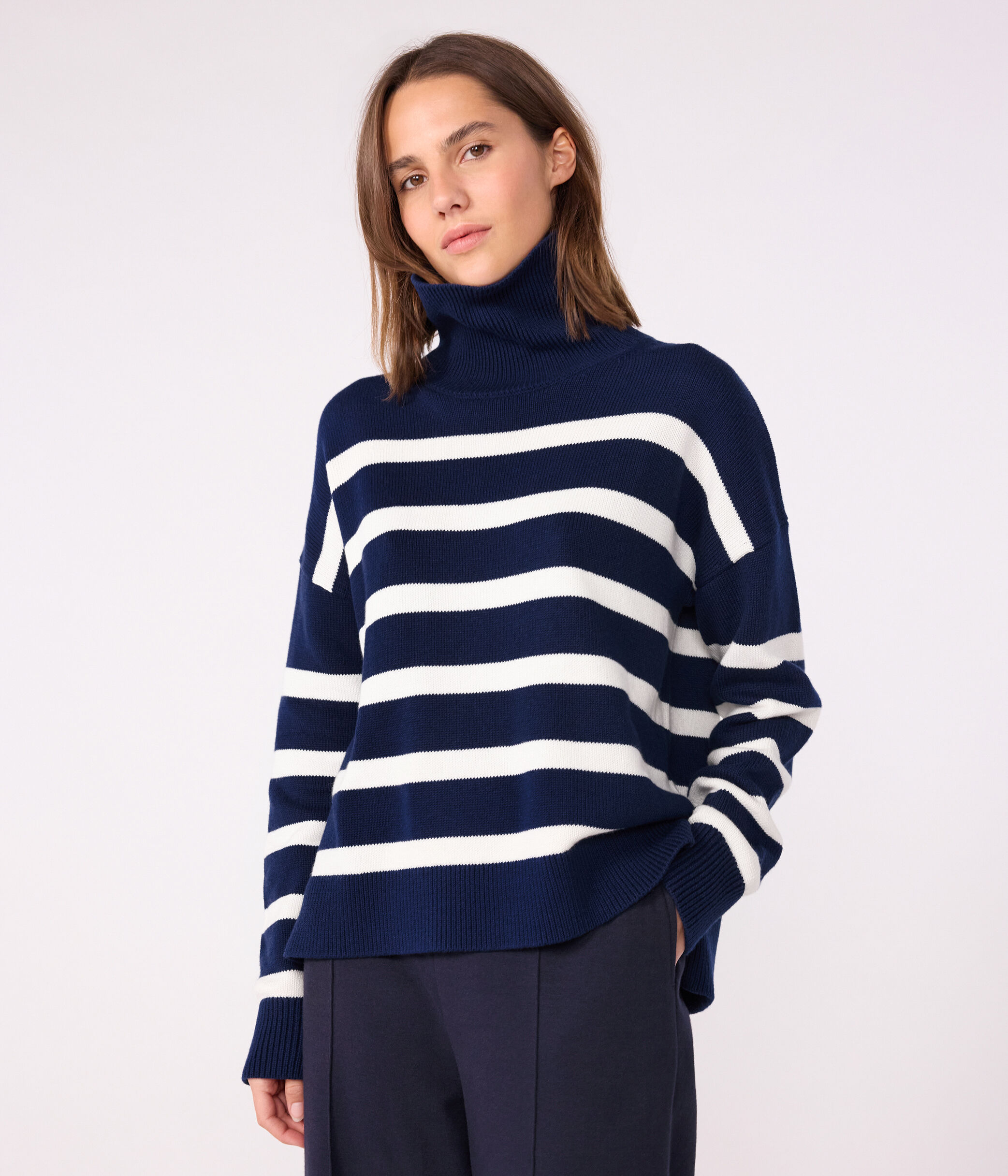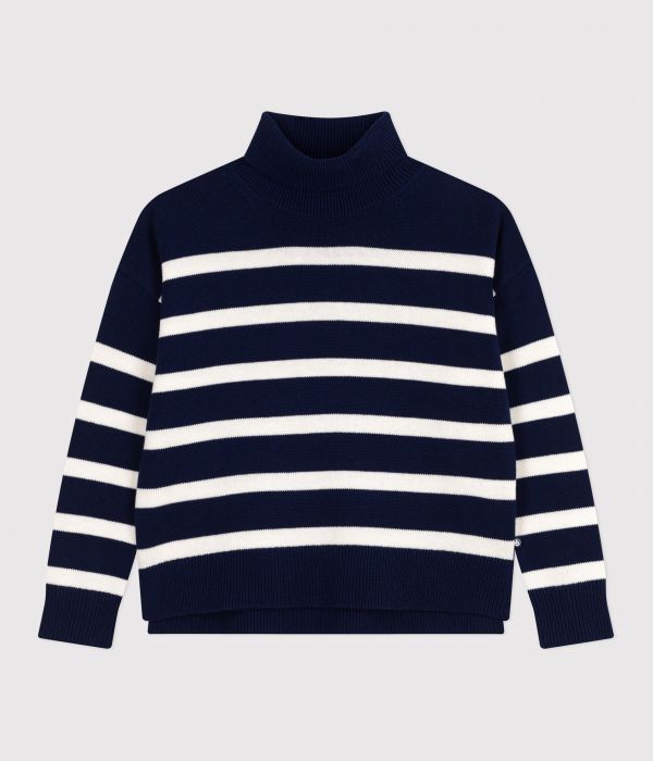 Pull col roulé en tricot de laine rayé, doux et chaud pour l'hiver.