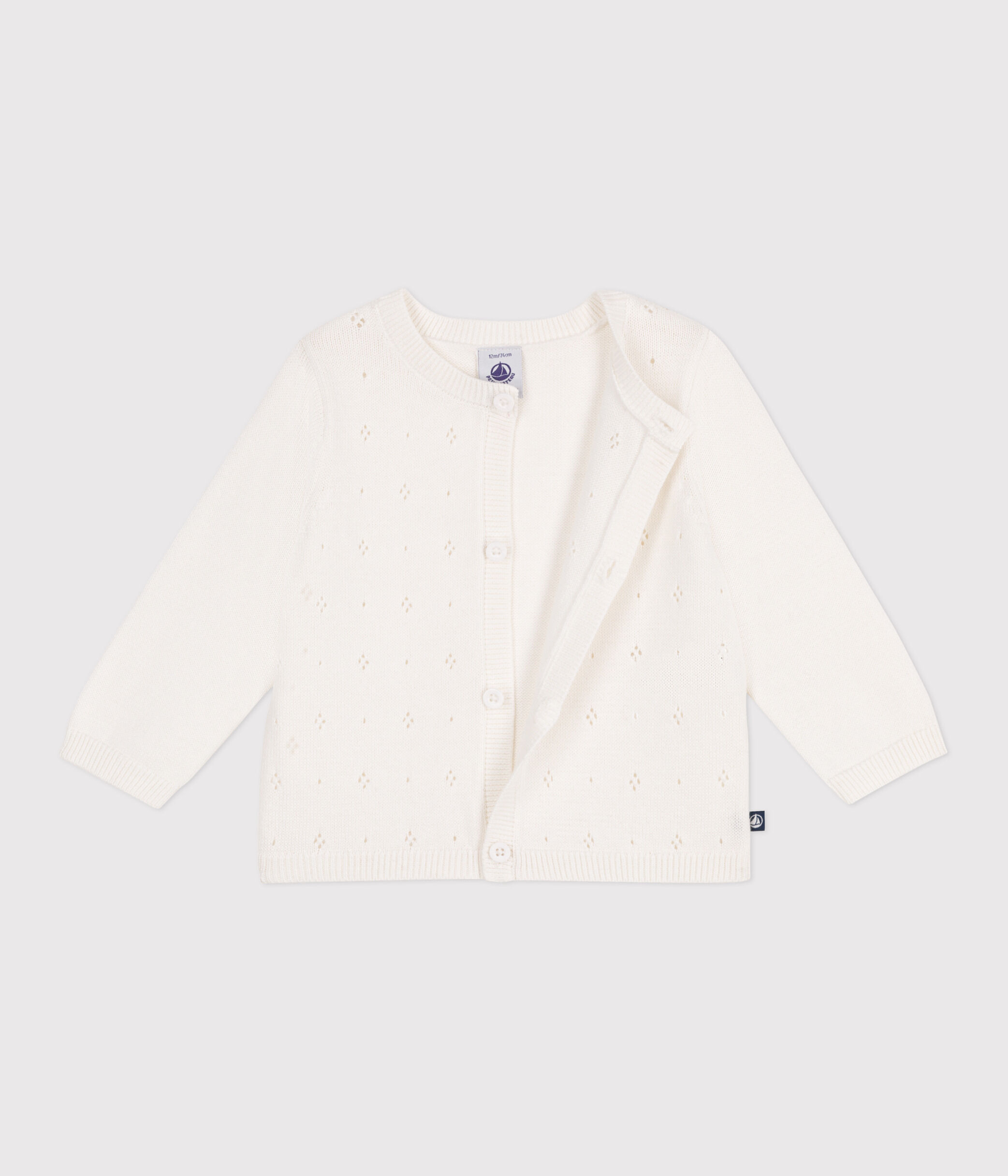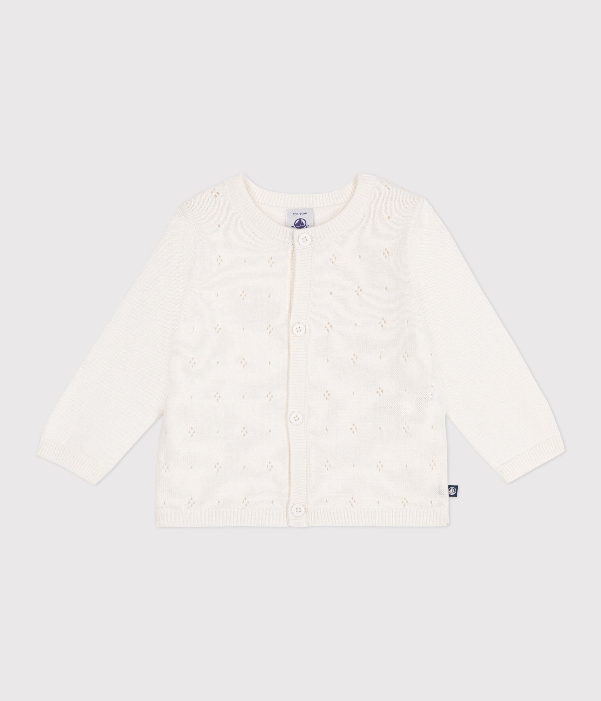 Gilet fille en tricot coton ajouré sur le devant. Le point fantaisie apporte une touche chic !