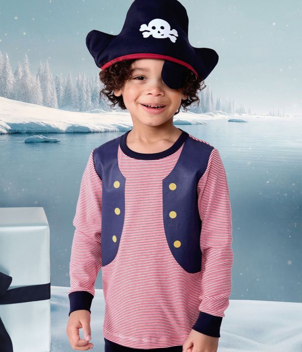 Pyjama et chapeau de pirate mixte en coton en côte 1X1, une matière extensible et confortable.