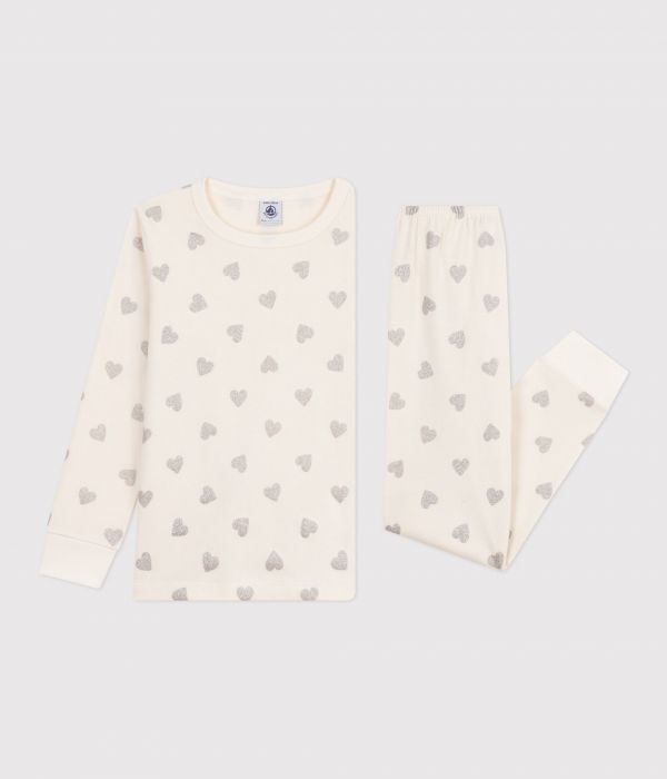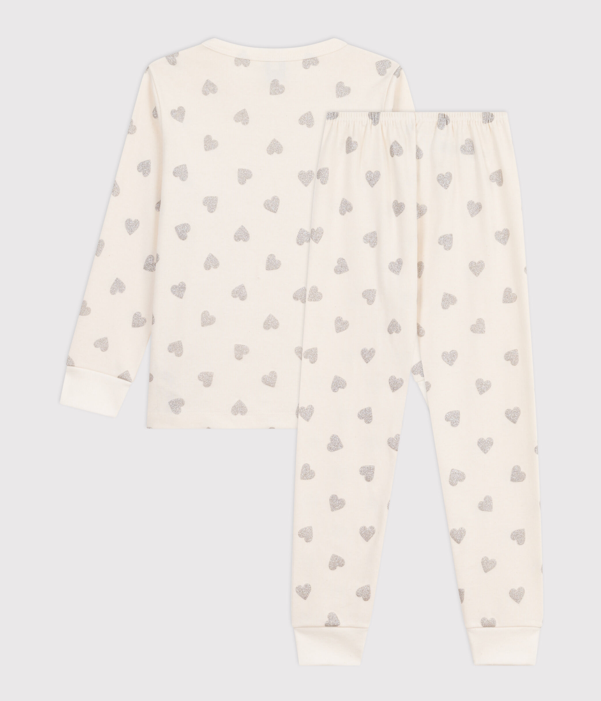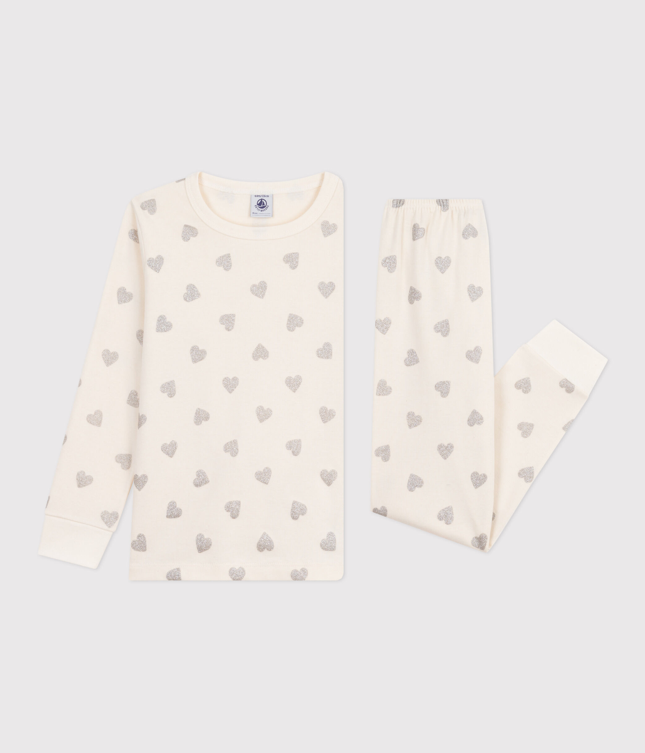 Pyjama fille cœurs à paillettes en côte 1X1, une matière extensible et confortable.