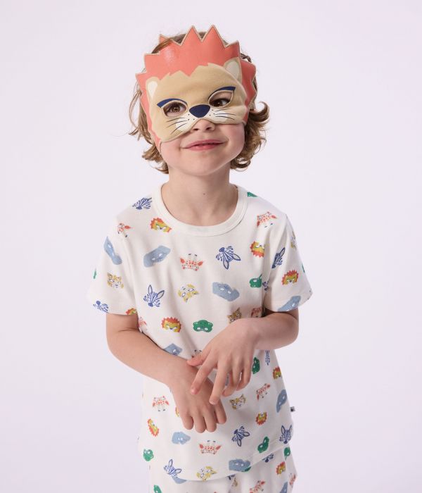 Pyjama court mixte et masque de lion en côte 1x1, une matière extensible et confortable.