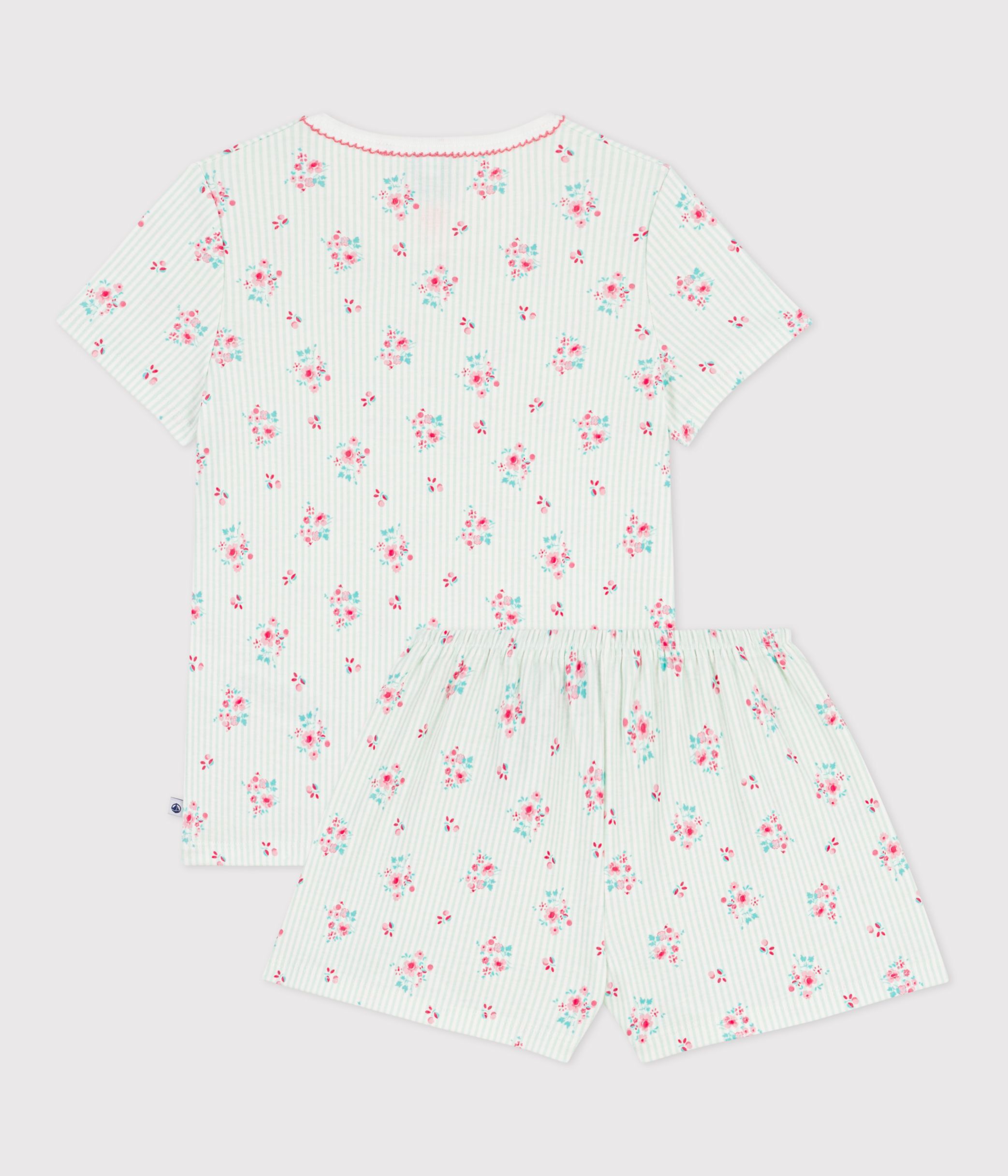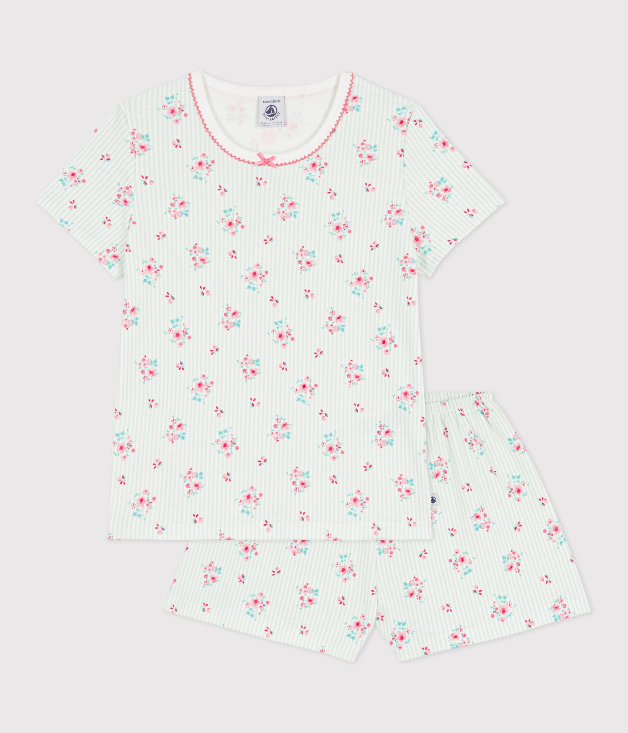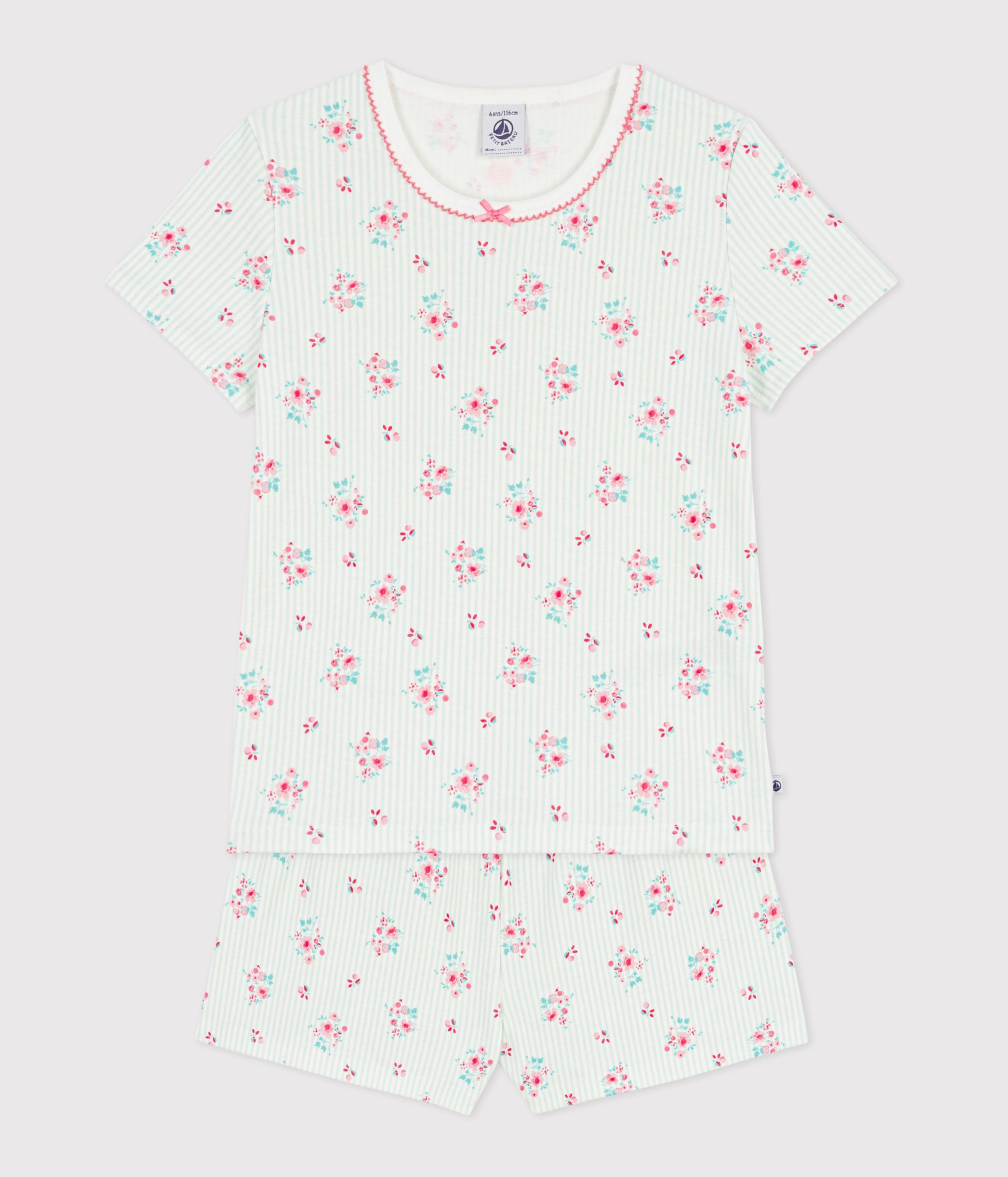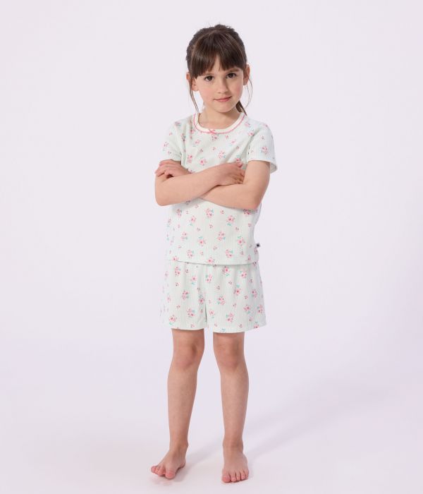 Pyjama court fille en côte 1x1, une matière extensible et confortable.