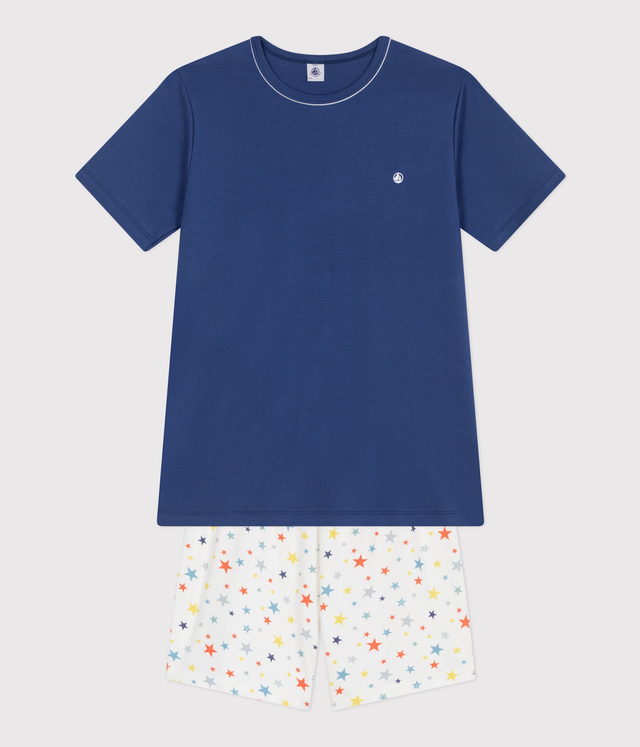 Pyjama court junior garçon en côte 1x1, une matière extensible et confortable.