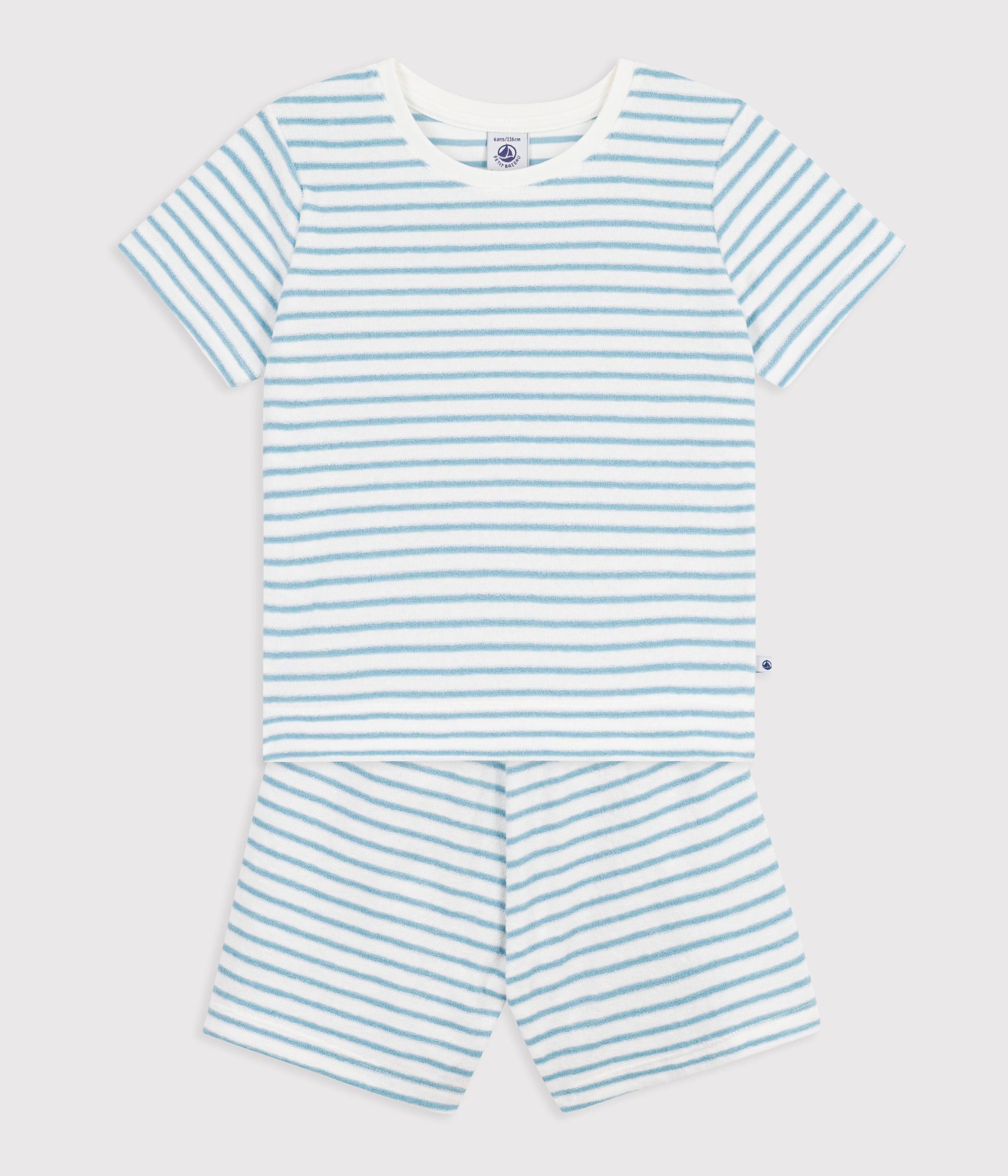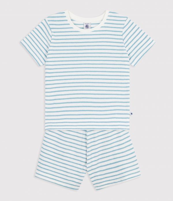 Pyjama court mixte en bouclette éponge en coton, une matière légère et estivale.