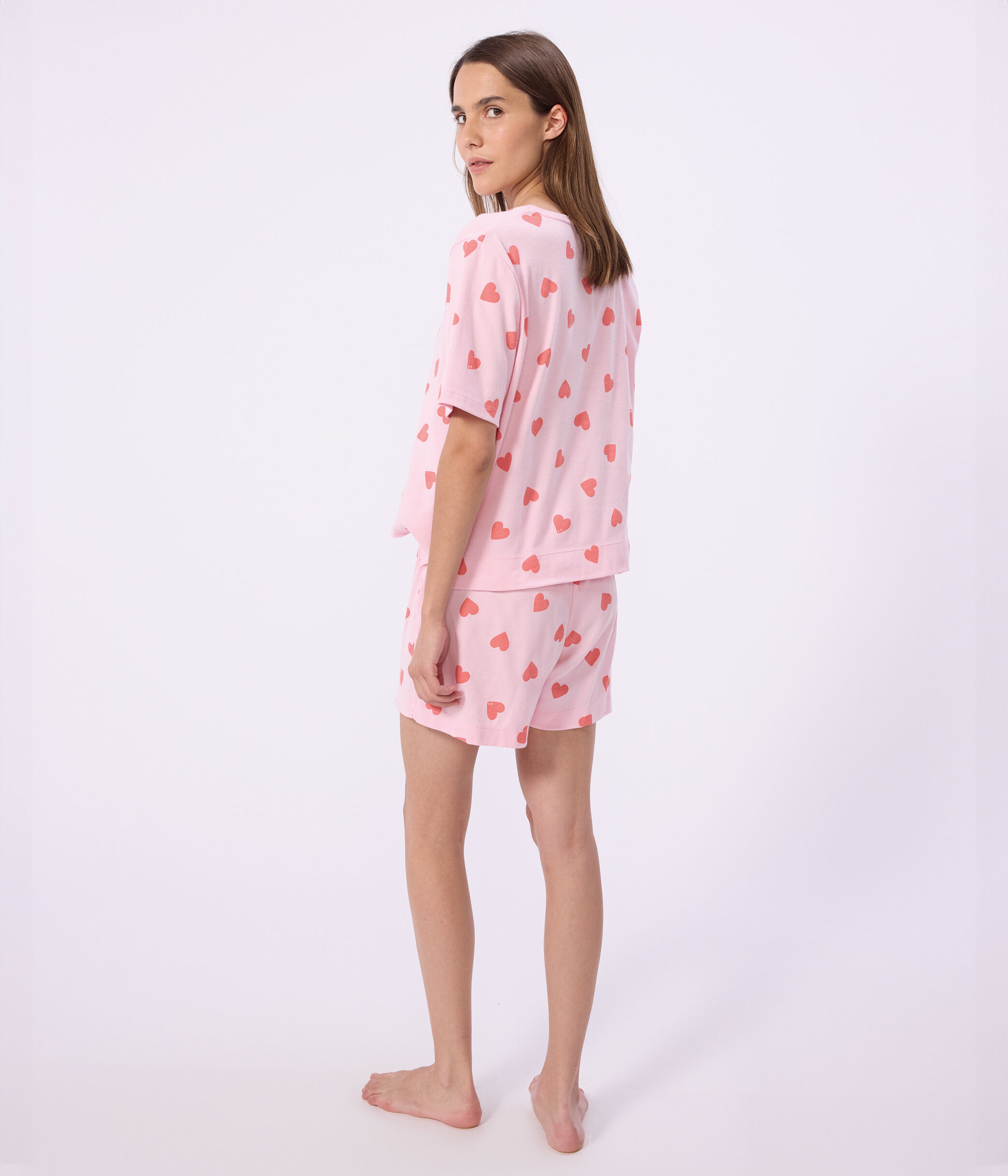Pyjama court femme en côte 1x1, une matière extensible et confortable.