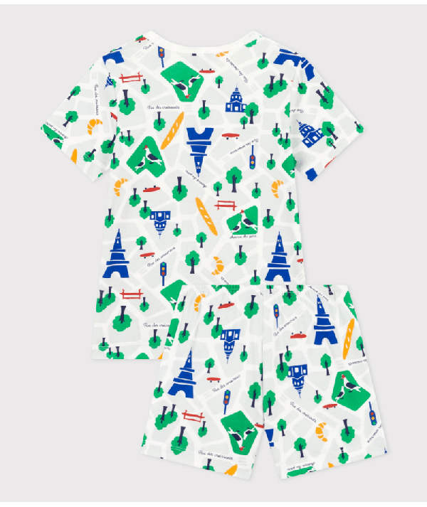 Pyjacourt unisexe en côte 1x1 imprimée, la matière emblématique de Petit Bateau, souple et confortable.