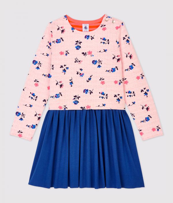 • Robe manches longues à effet trompe l'œil en tubique et coton, matières emblématiques de Petit Bateau.