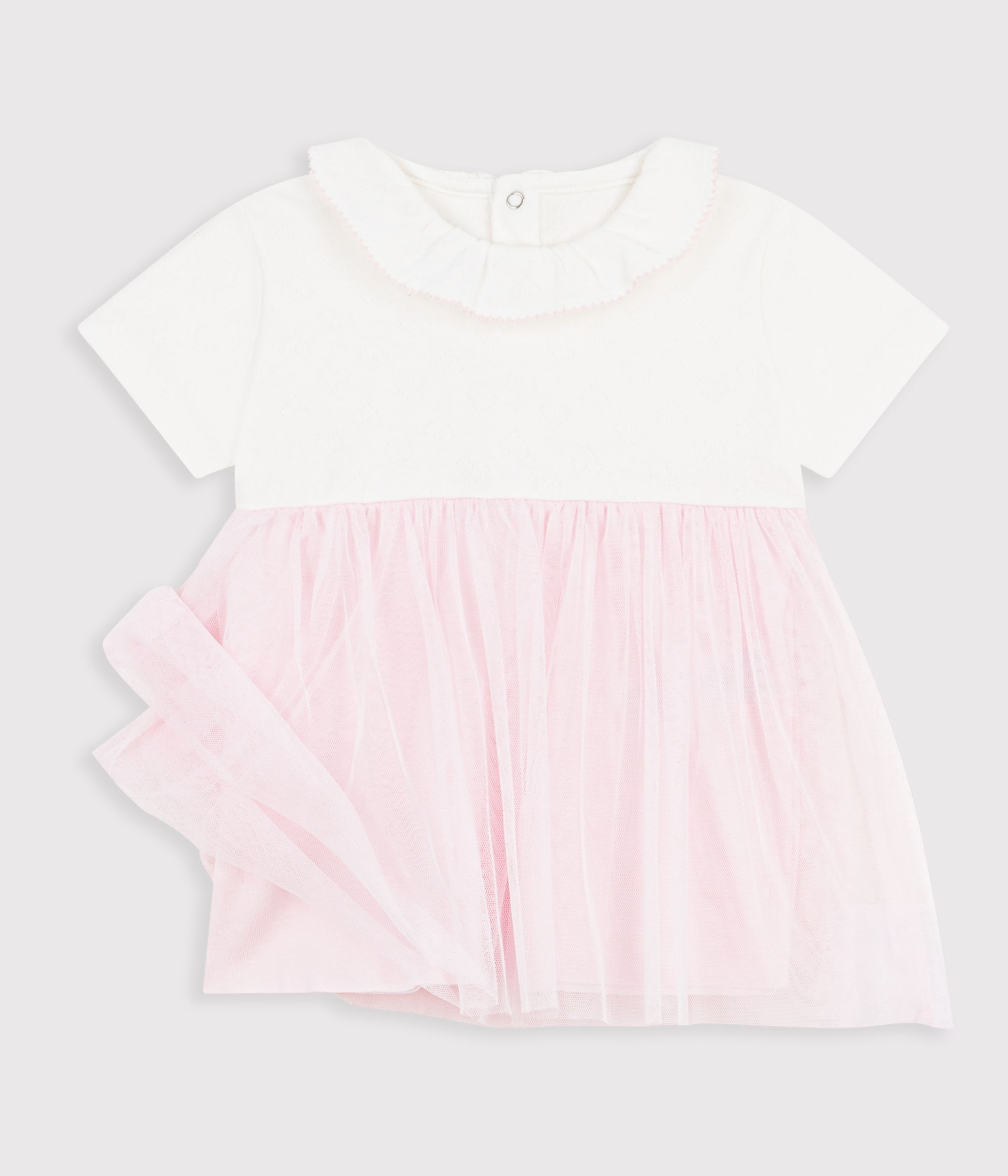 Robe festive esprit ballerine bi-matière en coton ajouré et jupe en tulle.