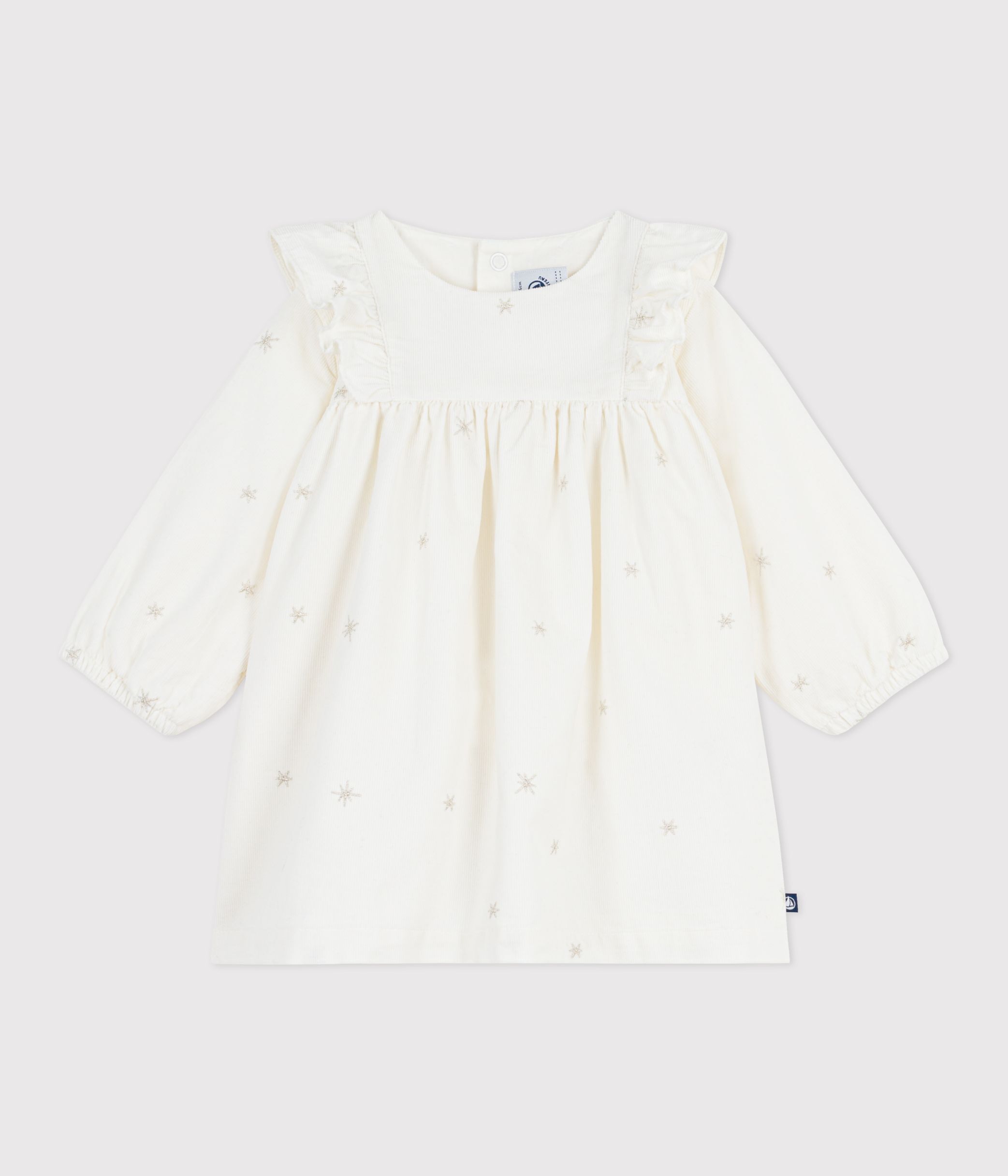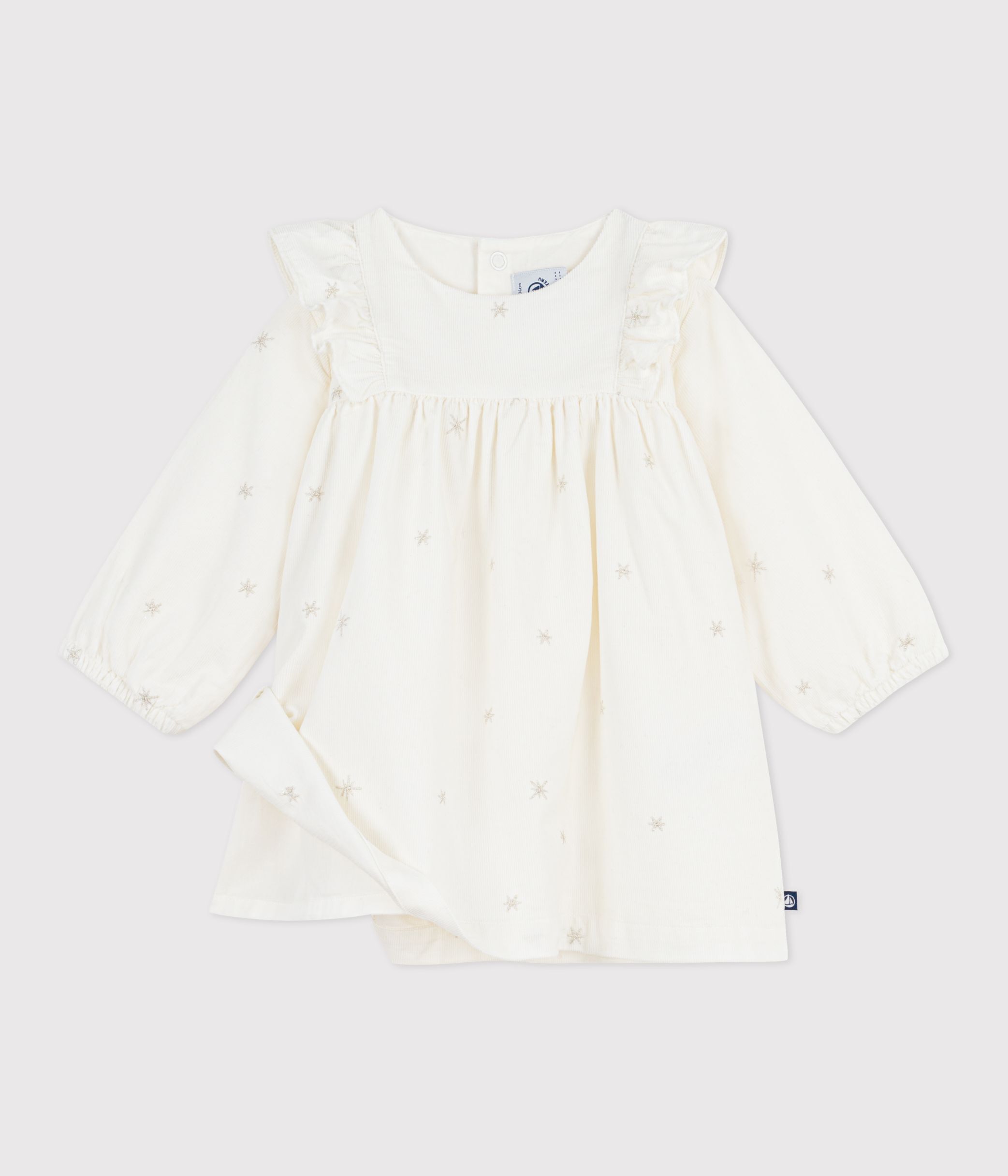 Vous commentez: Robe bébé en velours côtelé manches longues brodée