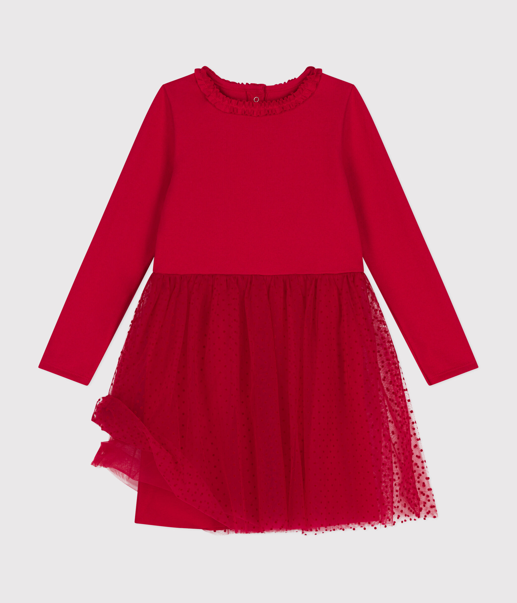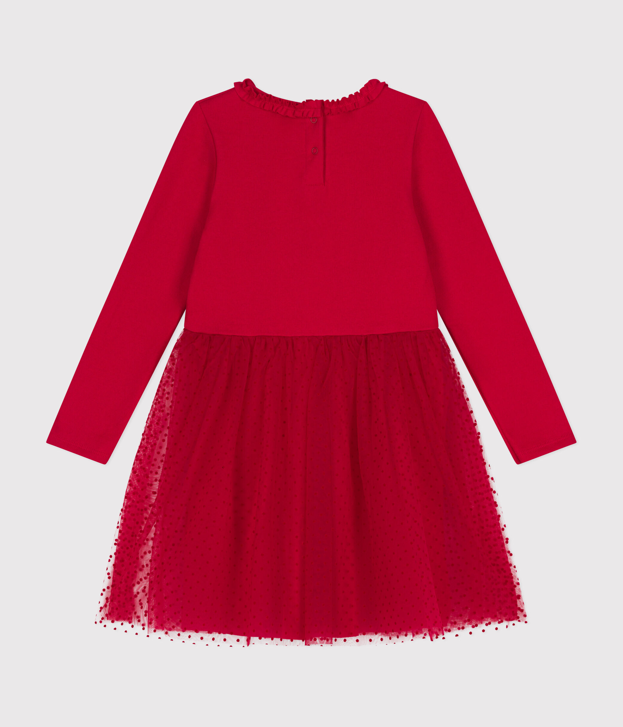 Robe festive esprit ballerine bi-matière en coton épais et tulle, idéale pour les fêtes de fin d'année.