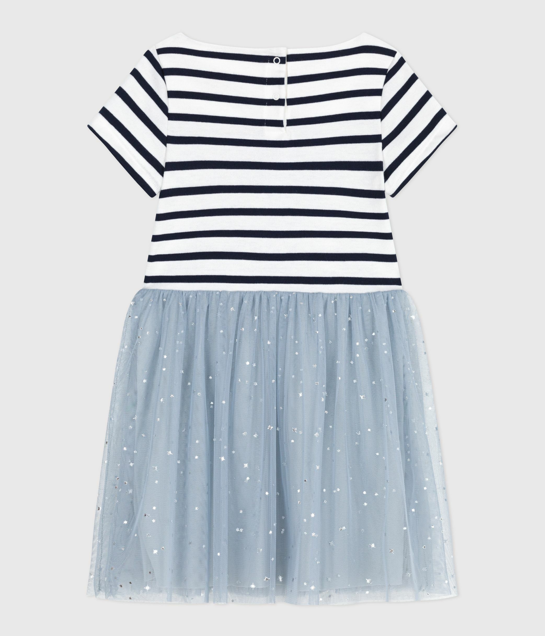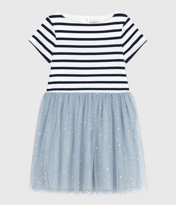 Robe fille festive esprit ballerine bi-matière en jersey et jupe en tulle pailleté.