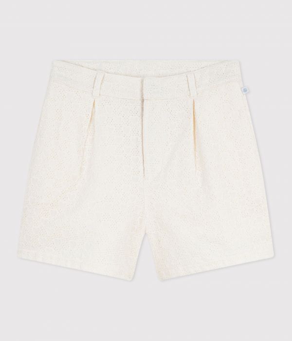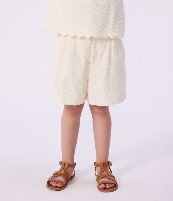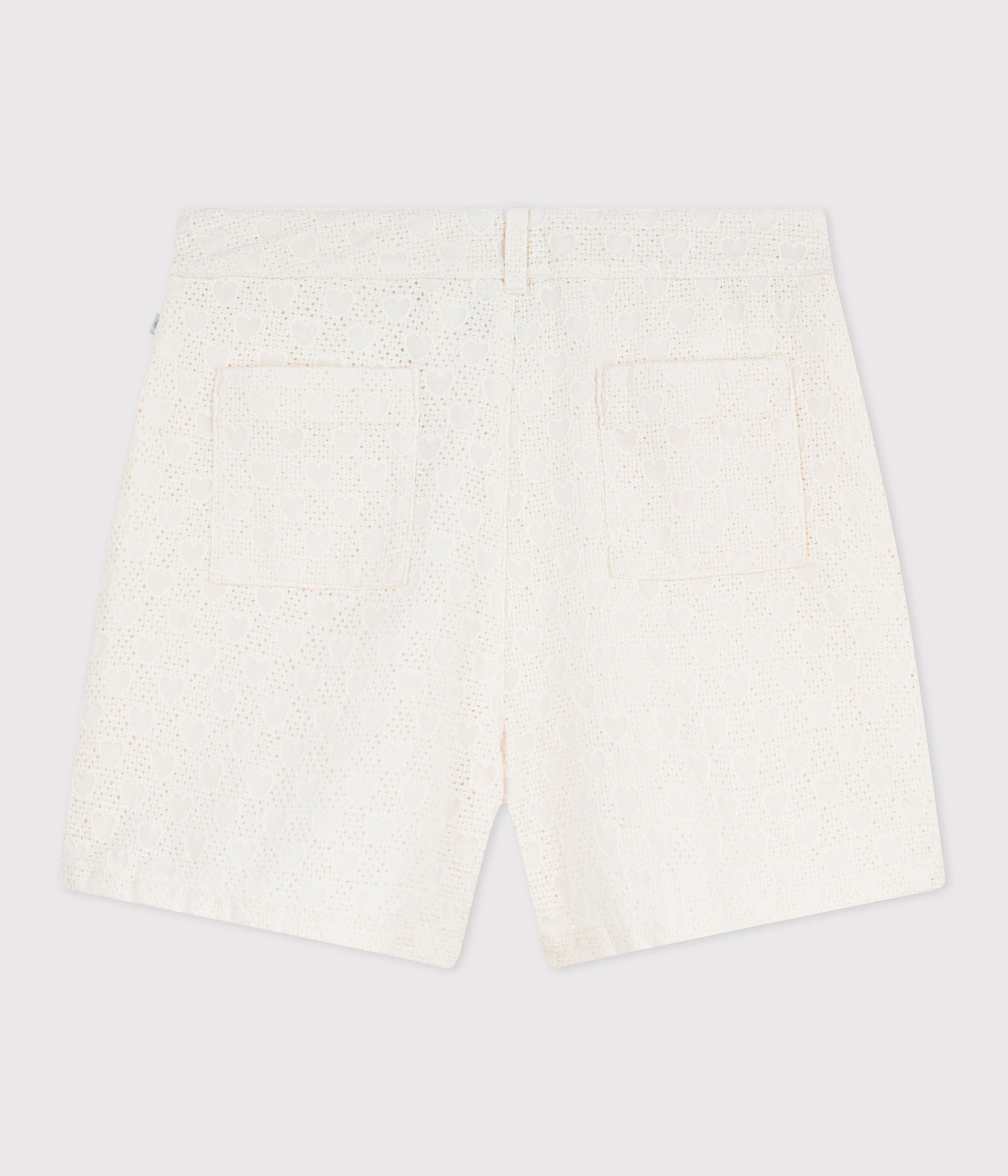 Short fille en broderie anglaise, une toile légère et fine avec un motif coeur à l’aspect brodé.
