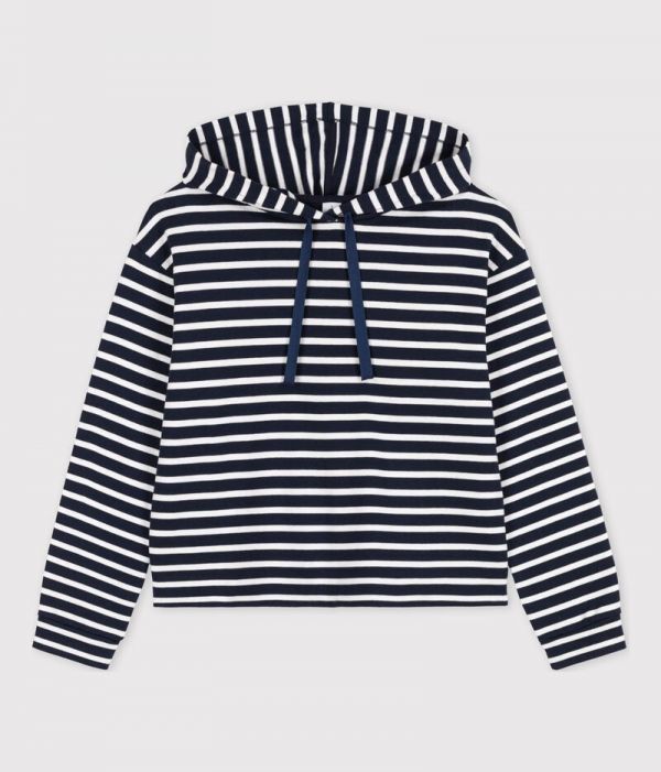 L'authentique et intemporelle marinière en coton épais se décline en version sweatshirt.