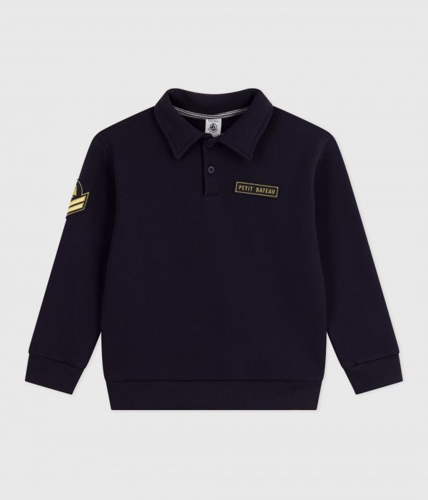Sweatshirt avec col polo garçon en molleton, doux et confortable.